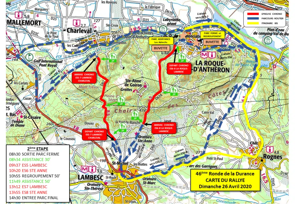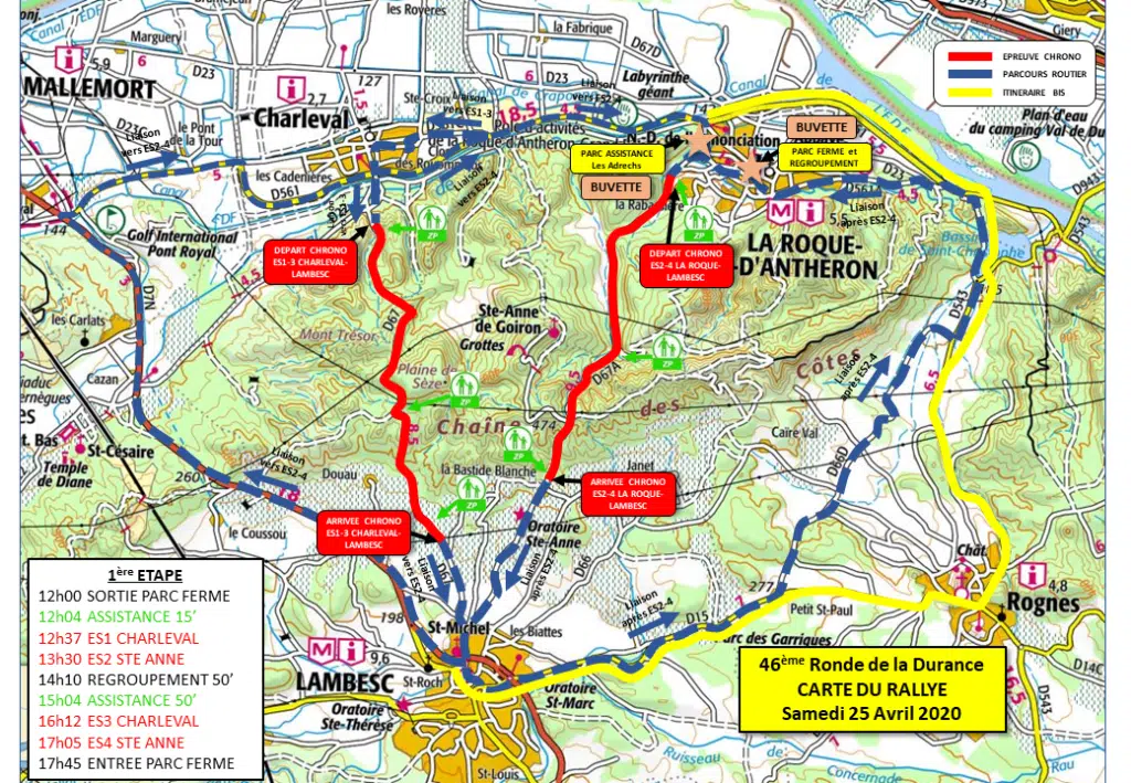Bonsoir, Nous avons le regret de vous annoncer l’annulation du Rallye Ronde de la Durance. Cette annulation fait suite à l’interdiction préfectorale d’organiser des épreuves sportives jusqu’au 5 mai 2020. Compte tenu de la situation sanitaire du pays, il n’était pas responsable de maintenir le rallye. En attendant, portez-vous bien, prenez soin de vous et de vos proches. Amicalement,
