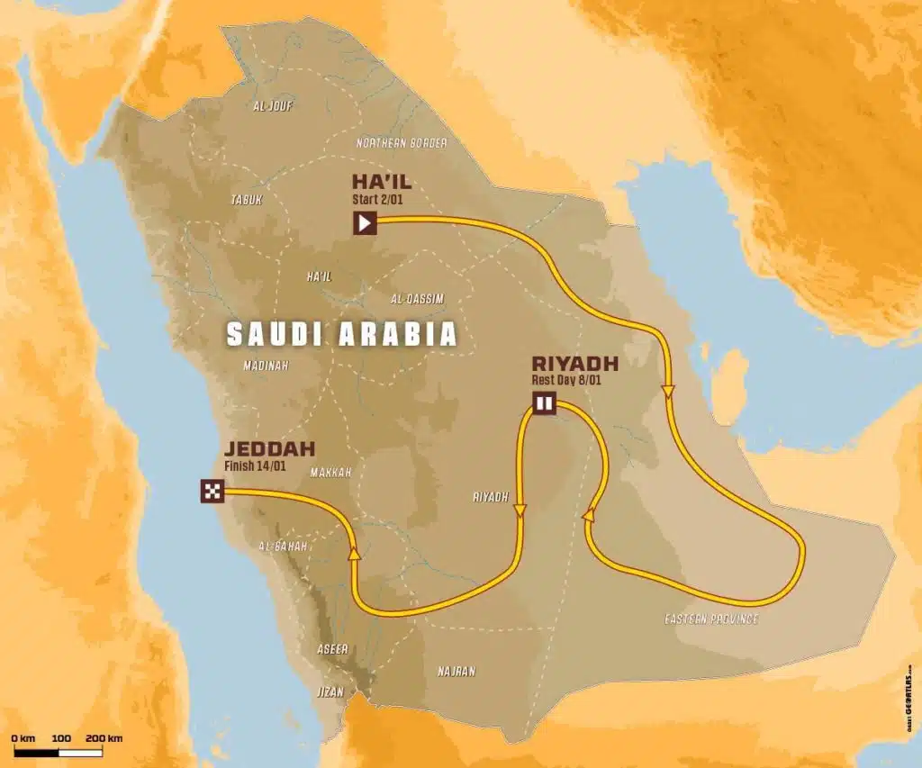 Pour sa 44e édition qui se tiendra du 2 au 14 janvier prochains, le Dakar visitera pour la troisième fois l’Arabie Saoudite, en prenant le départ de Ha’il pour rejoindre Jeddah, après avoir observé une journée de repos à Riyadh. En donnant une orientation sud-est au parcours, les organisateurs apportent une tonalité encore plus sablonneuse au défi : dans l’Empty Quarter, c’est « dunes à gogo » !