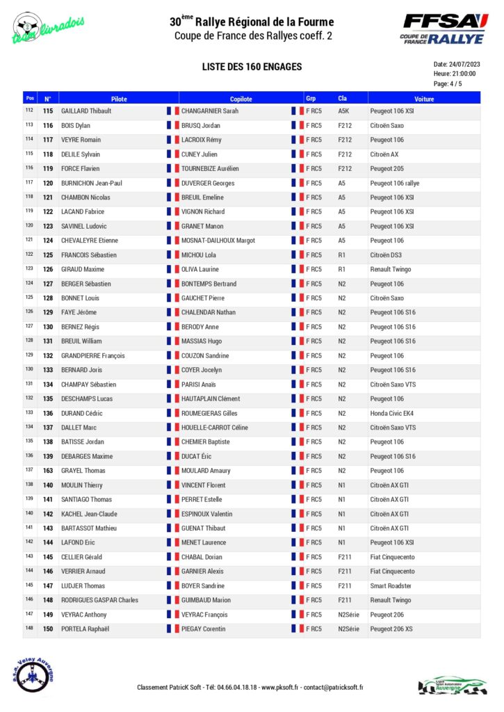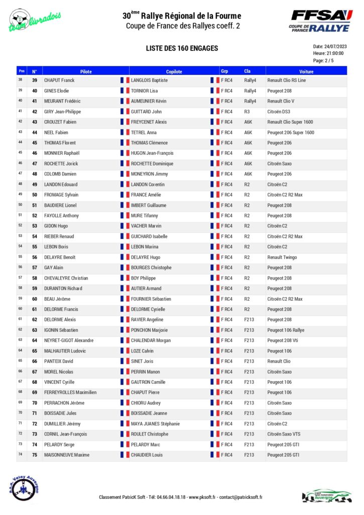 La 30 ème édition du Rallye régional de la Fourme d’Ambert sera organisé les 28 et 29 juillet 2023 par l’ASA Velay avec au programme six spéciales.