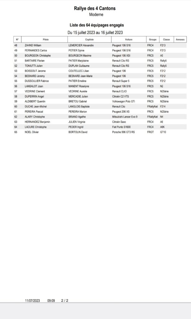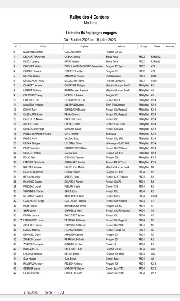 La première édition du Rallye régional des 4 Cantons sera organisée les 15 et 16 juillet 2023 par l’ASA Gascogne Agenais et le Team Rallye Découverte avec au programme une seule spéciale à parcourir cinq fois sur deux jours de course.