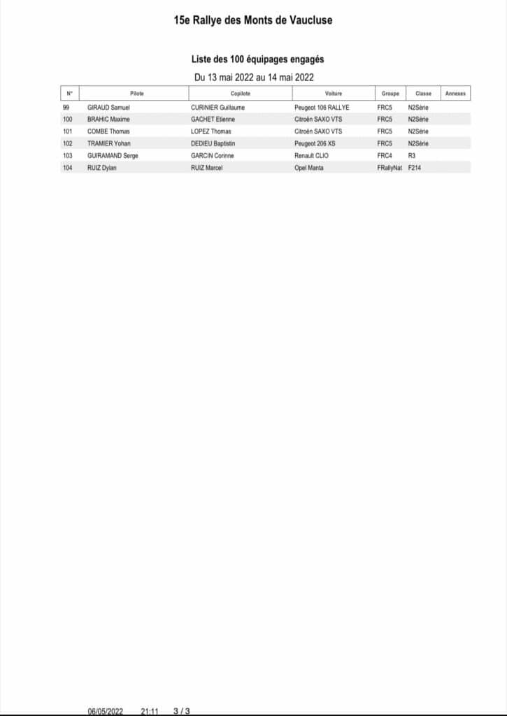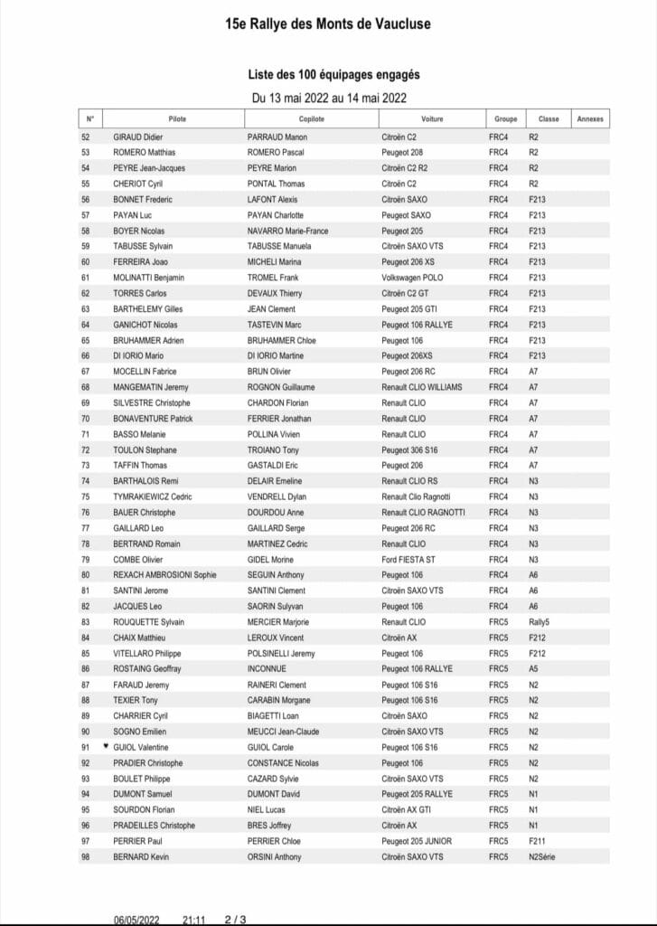 La 15 eme édition du rallye des Mont de Vaucluse 2022 (la 7eme édition du Rallye des Mont de Vaucluse VHC 2022) se déroulera les 13 et 14 Mai 2022 sur 2 spéciales à faire 3 fois sur la journée du Samedi, des parcours de liaison raccourcis.