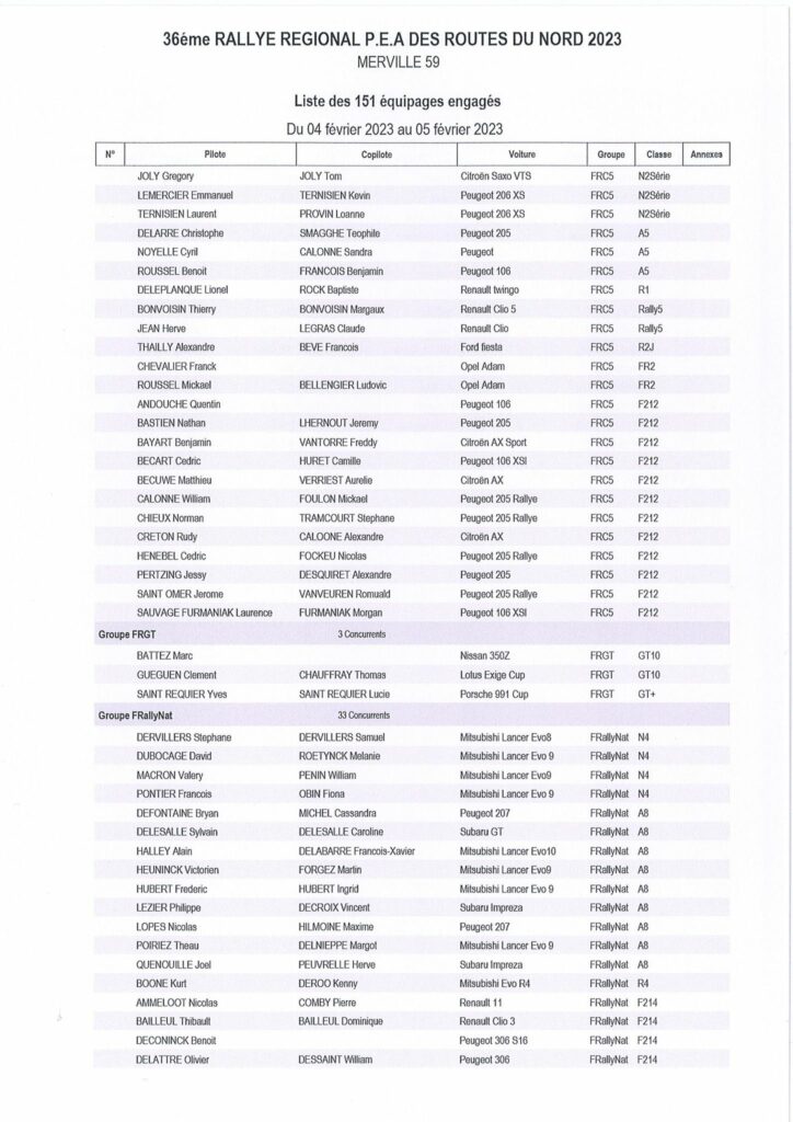 En attendant la liste numérotée, voici les engagés avec 151 équipages au départ, ce qui constitue un franc succès !