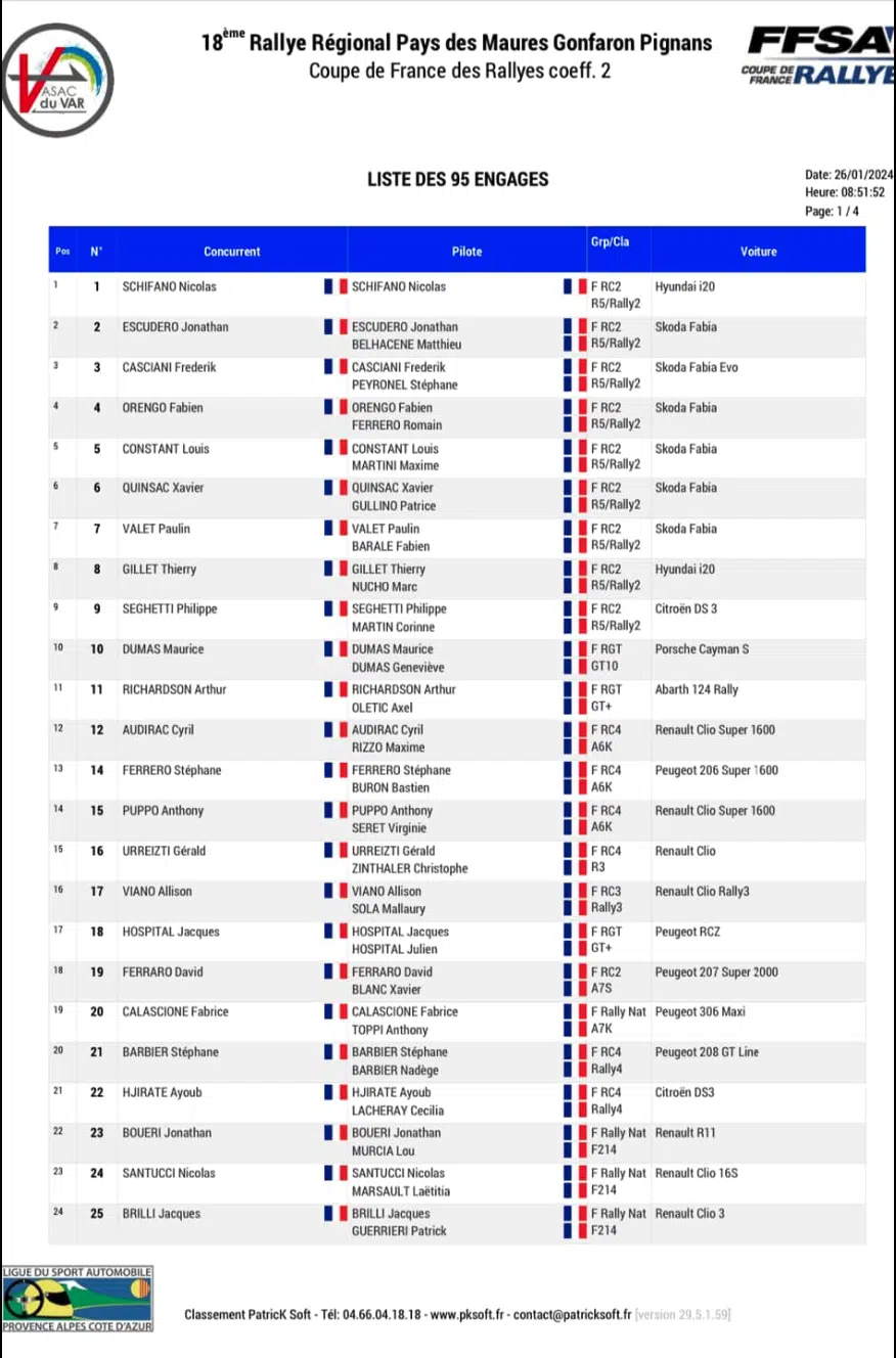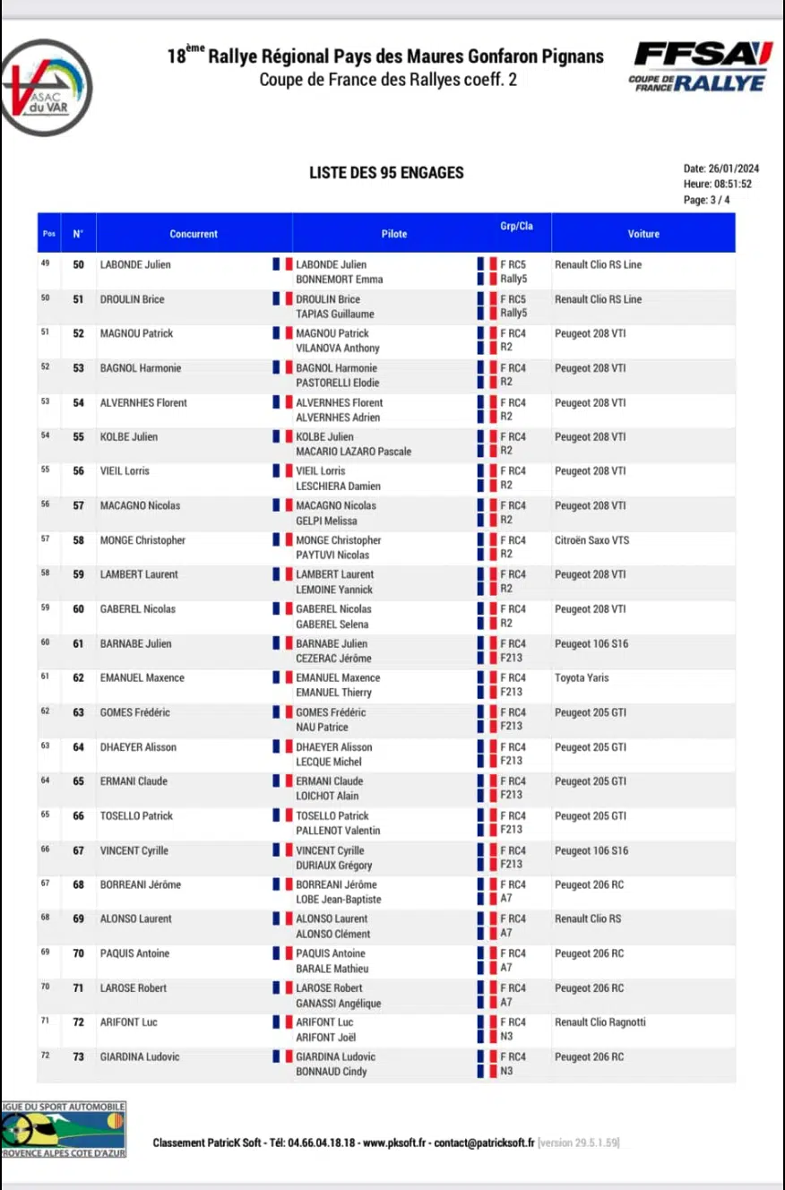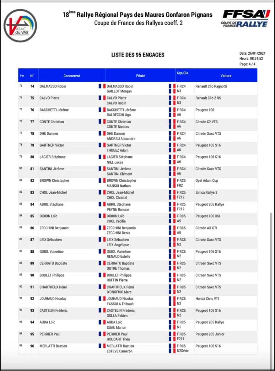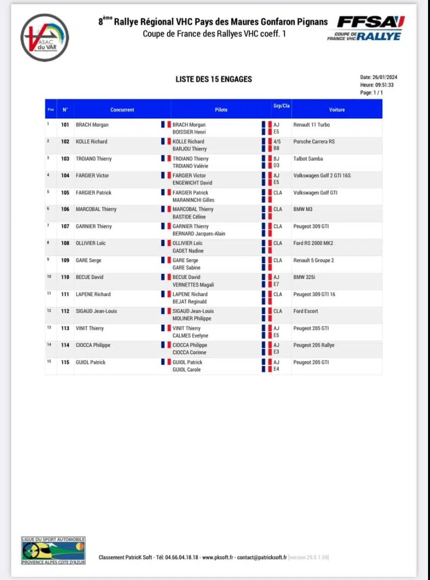 Premier rendez-vous des rallyes dans le Var, le Rallye régional Pays des Maures – Gonfaron Pignans se organisé les 2 et 3 février 2024 par l’ASAC du Var avec au programme six spéciales.
