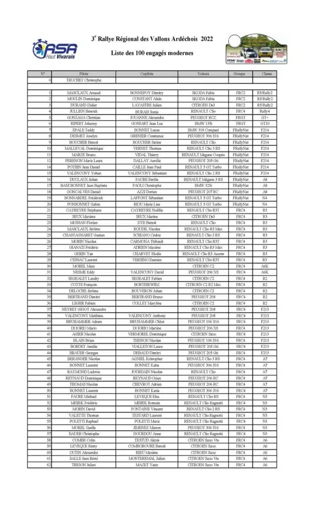 Rallye Régional Des Vallons Ardéchois 2022 : Présentation & Engagés