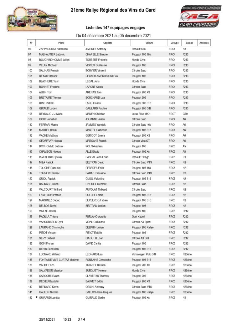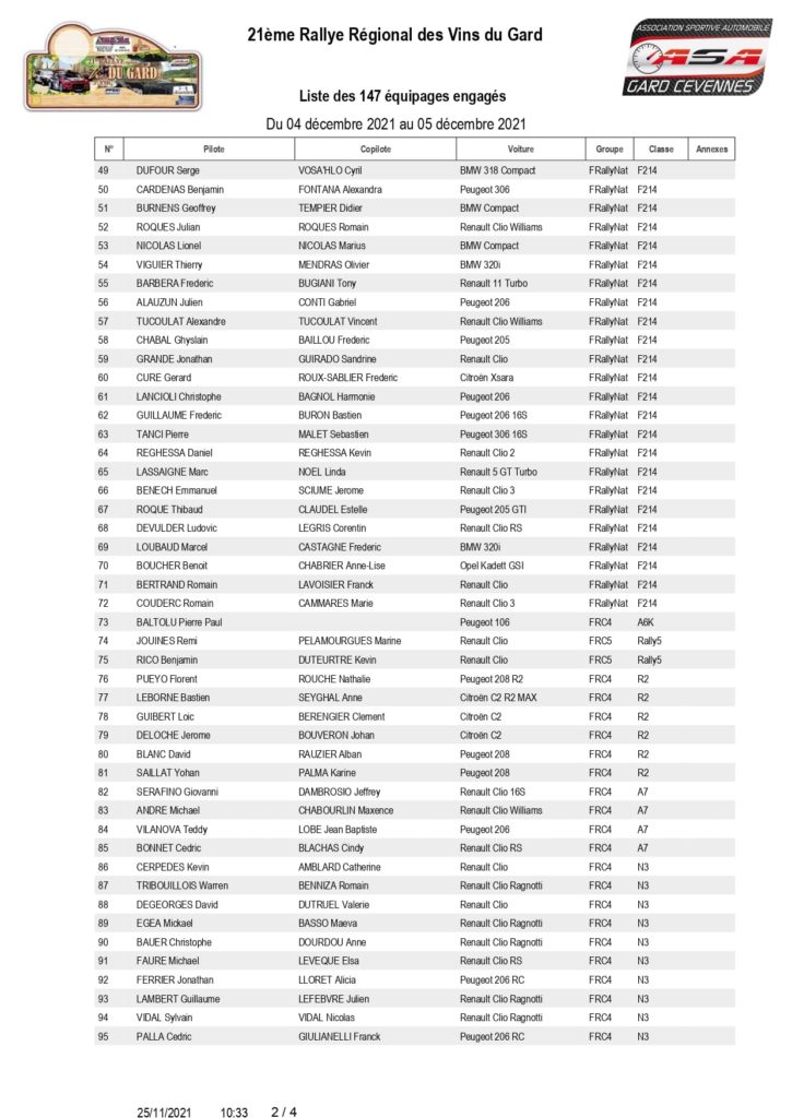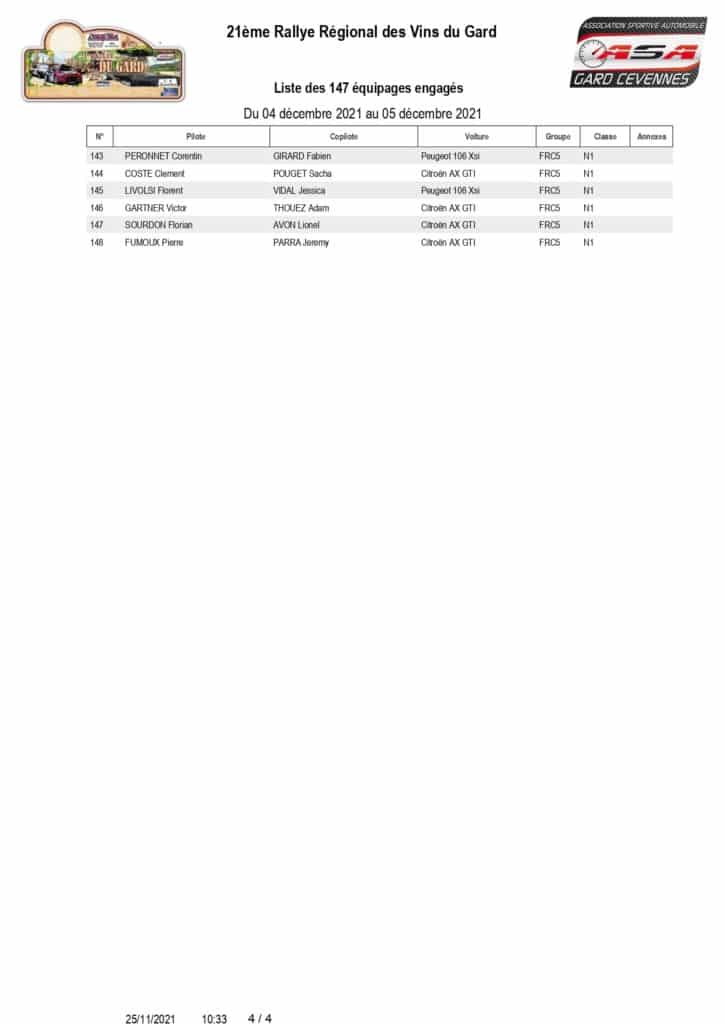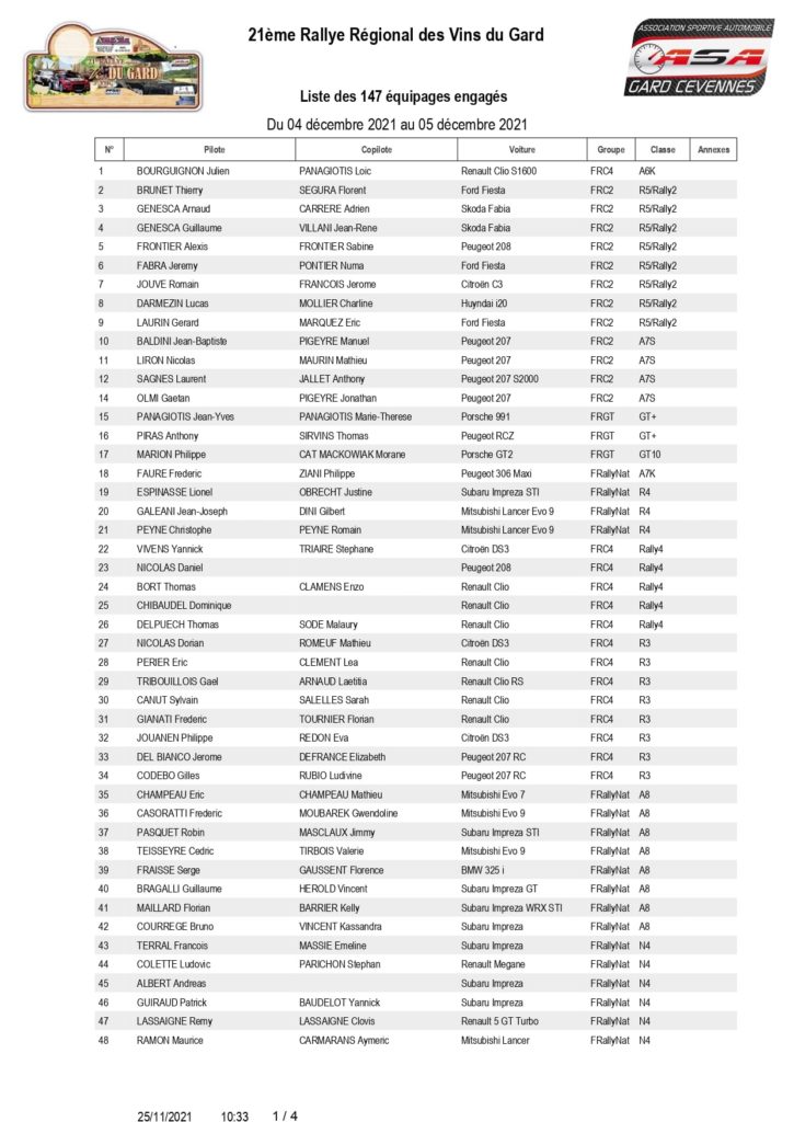 La 21 èe édition du Rallye régional des Vins du Gard sera organisée les 4 et 5 décembre 2021 par l’ASA Gard Cévennes, ligue Occitanie Méditerranée. Six spéciales au programme avec un très beau plateau, voici les premières informations.