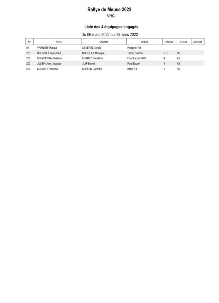 L’Association Sportive Automobile de la Meuse organise le 5 et 6 mars 2022 la 30 ème rallye régional de la Meuse autour de Grondecourt-le-château sur un parcours de 131,1 kms. Il est divisé en 1 étape et 3 sections. Il comporte 3 épreuves spéciales d’une longueur totale de 39,90 kms