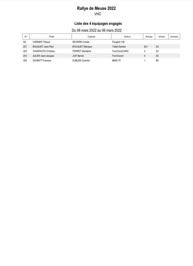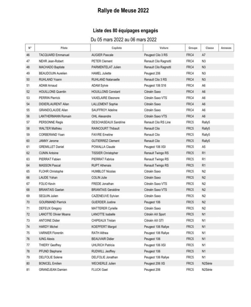 L’Association Sportive Automobile de la Meuse organise le 5 et 6 mars 2022 la 30 ème rallye régional de la Meuse autour de Grondecourt-le-château sur un parcours de 131,1 kms. Il est divisé en 1 étape et 3 sections. Il comporte 3 épreuves spéciales d’une longueur totale de 39,90 kms
