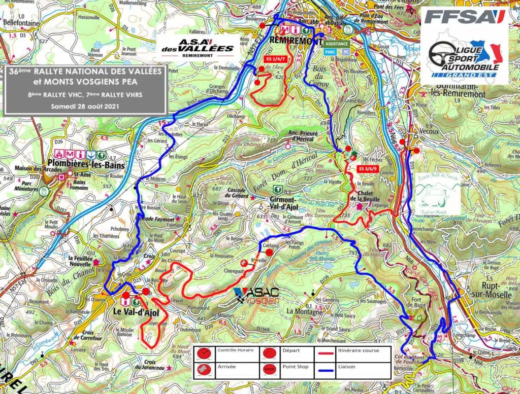 Le 36eme Rallye National des Vallées et Monts Vosgiens comporte un parcours de 250 kms sur 1 étape pour 92 kms