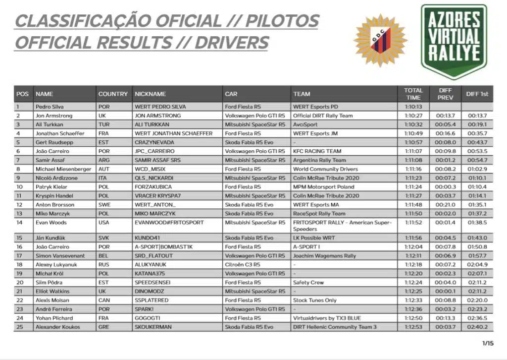 Plus de 1110 participants étaient présents pour remporter le Rallye Virtuel des Açores, les pilotes ERC eux aussi étaient de la partie et ont fait bonne figure en figurant dans le top 20 avec un certain Alexey Lukyanuk…