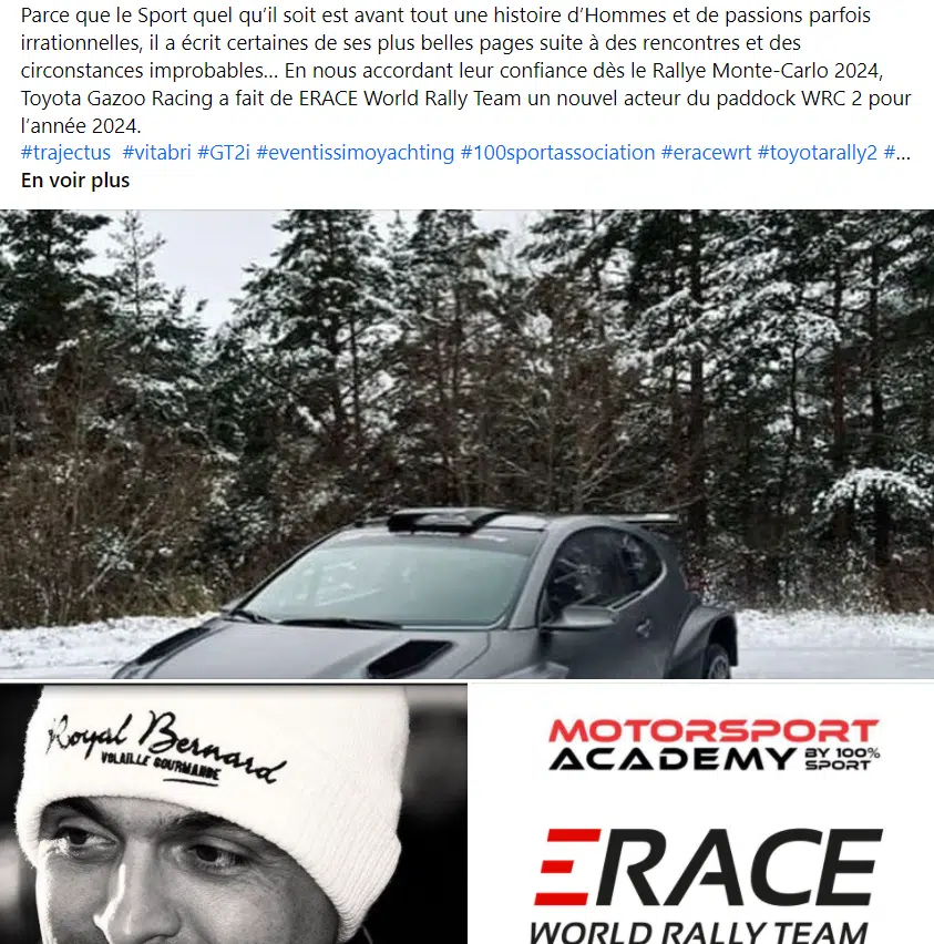 Parce que le Sport quel qu’il soit est avant tout une histoire d’Hommes et de passions parfois irrationnelles, il a écrit certaines de ses plus belles pages suite à des rencontres et des circonstances improbables… En nous accordant leur confiance dès le Rallye Monte-Carlo 2024, Toyota Gazoo Racing a fait de ERACE World Rally Team un nouvel acteur du paddock WRC 2 pour l’année 2024. Annoncé le Team