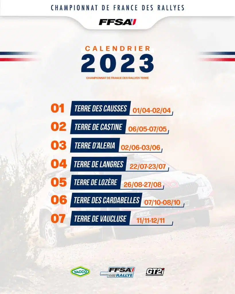 Et c’est la surprise en Championnat de France des Rallyes Terre avec l’arrivée du Rallye d’Aléria en Corse. On pouvait s’en douter après la publication du calendrier du Clio Trophy Terre mais c’est une confirmation ! Le calendrier passe donc de 6 à 7 épreuves avec la disparition malheureusement du Terre du Haut Var qui ne figure pas au calendrier après son annulation en 2022.