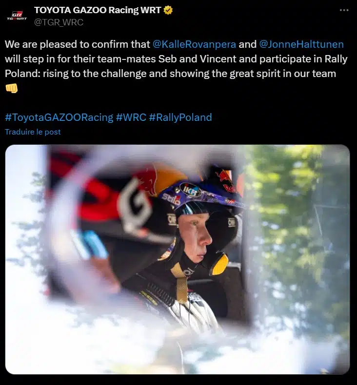L’équipe Toyota l’a confirmé via ses réseaux sociaux hier soir.