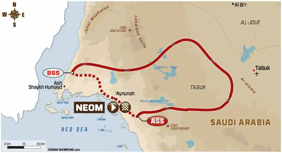 Le départ de la spéciale a été donné en bord de Mer Rouge, la journée débutant par une balade sur le rivage. L’ambiance balnéaire ne dure pas, on s’oriente ensuite vers des pistes parfois roulantes mais souvent trop sablonneuses pour faire monter le compteur. La longueur et la variété de l’exercice du jour le classent parmi les plus exigeants de la quinzaine. Au programme c’est une boucle de 465 kms !
