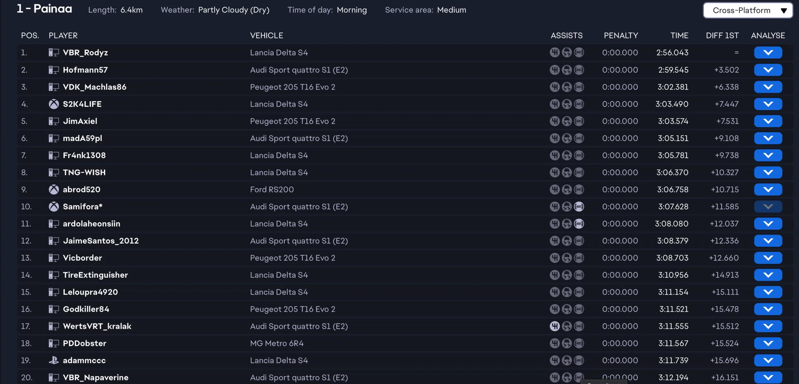 - LowFuelMotorsport : https://racenet.com/ea_sports_wrc/clubs/2526