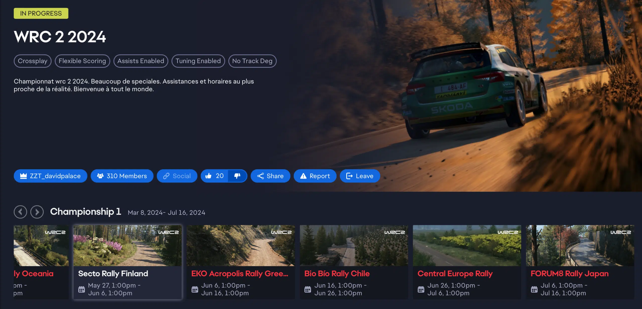 - Coupe FR R5 : https://racenet.com/ea_sports_wrc/clubs/7572