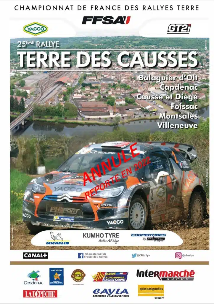 Et les annulations se succèdent. Malgré le travail admirable de l’équipe président Didier ALLEGUEDE, le Rallyes Terre des Causses 2021 n’aura pas lieu et c’est la manche d’ouverture du Championnat de France Terre qui passe à la trappe malheureusement.