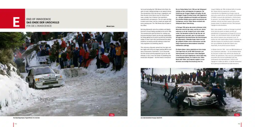 McKlein revisite le Monte Carlo de A à Z avec un superbe ouvrage publié et quelques 500 photos publiées et plus de 400 pages. L’équipe McKlein avec ses photographes s’est associée à des auteurs tels que le journaliste et participant au Rallye de Monte-Carlo John Davenport et le journaliste Michel Lizin. Toutes les personnes concernées ont fouillé dans leurs souvenirs et leurs archives photographiques et ont trouvé plus que ce qu’elles cherchaient. Le résultat est un livre visuellement époustouflant d’amusement et de diversions avec les meilleures histoires des quatre-vingt-dix rallyes qui ont eu lieu entre 1911 et aujourd’hui.