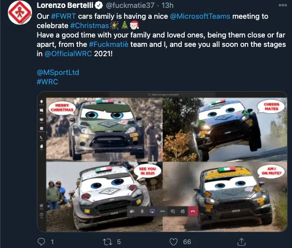 Our #FWRT cars family is having a nice @MicrosoftTeams meeting to celebrate #ChristmasSapin de noëlPère Noël Have a good time with your family and loved ones, being them close or far apart, from the #Fuckmatiè team and I, and see you all soon on the stages in @OfficialWRC 2021 @MSportLtd