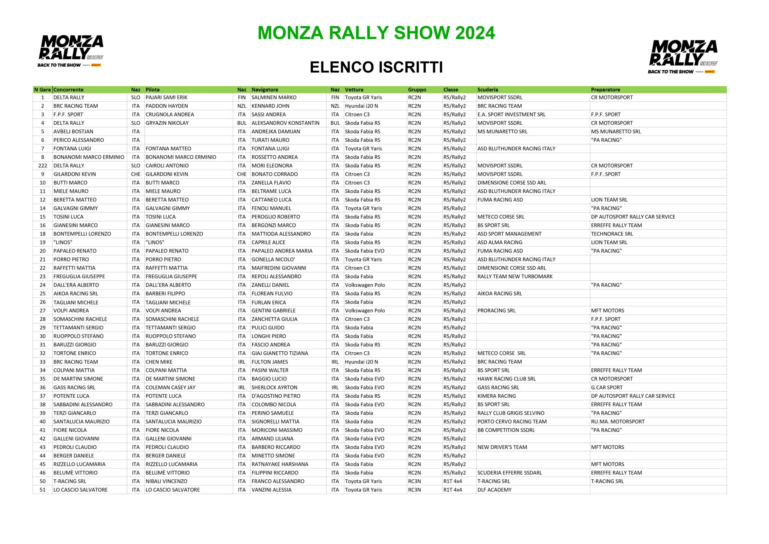 Monza Rally Show 2024 – Liste des engagés