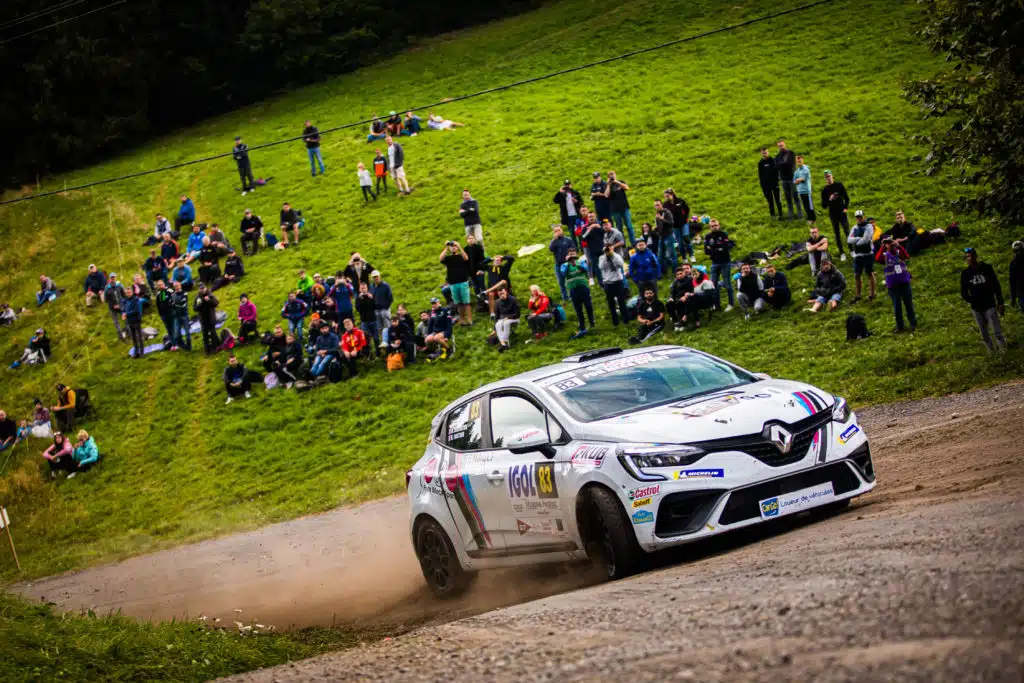 Dès le premier chrono, la mythique spéciale de Joux Verte nous partons à l’attaque. Un léger manque de confiance au freinage nous relègue à la 5ème place. Rien de catastrophique, les écarts sont faibles et le rallye est long. D’autant plus que le plateau d’excellents pilotes du Clio Trophy indique qu’être dans le top 10 est déjà en soit une performance.