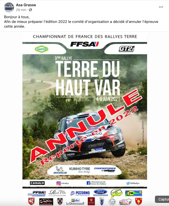 On vous en parlait il y a quelques semaines en arrière que l’épreuve risquait d’être annulée en 2021, c’est maintenant une certitude car les organisateurs viennent de l’annoncer de façon officielle, le Rallye Terre Du Haut-Var n’aura pas lieu en 2021.