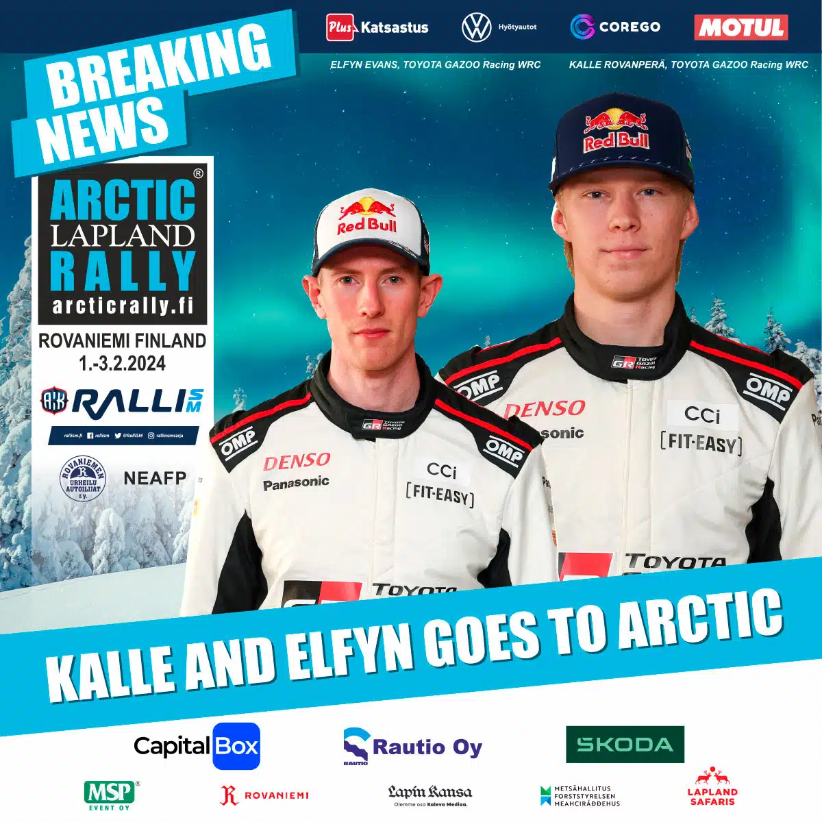 Effectivement, Kalle Rovanpera fera sa grande rentrée et viendra préparer le Rallye de Suède sur l’Arctic Lapland Rally qui se déroulera les 1er et 2 Février 2024. Il sera accompagné par Elfyn Evans qui lui aussi sera sur la Yaris Rally 1 Hybrid pour préparer le seul et unique rendez – vous sur neige.