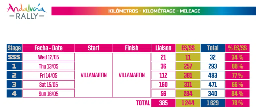 Les 10 et 11 mai seront consacrés au Shakedown et aux vérifications administratives et techniques ainsi qu’au prologue pour toutes les catégories. Puis s’ensuivront 4 jours d’étapes dans les décors typiques d’Andalousie.
