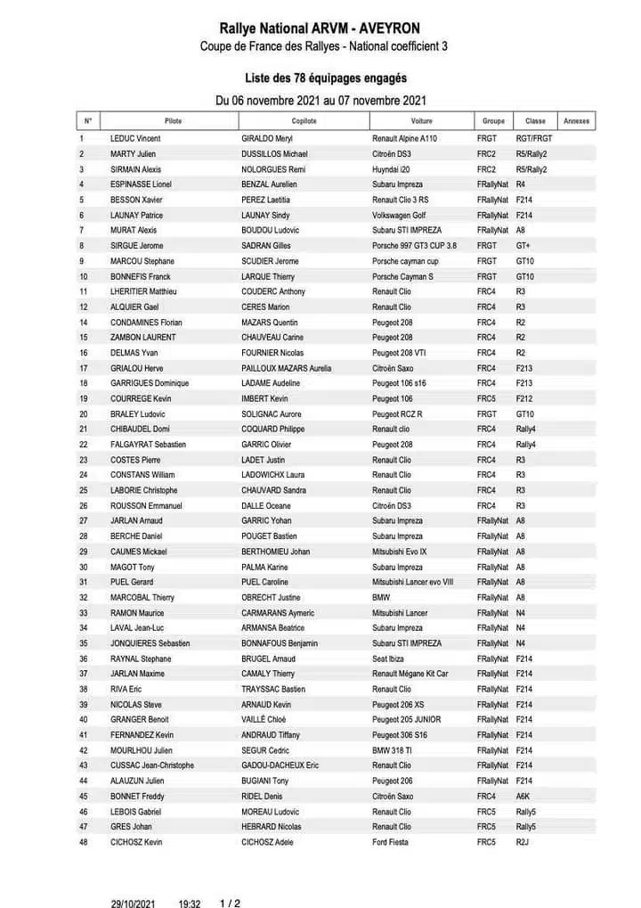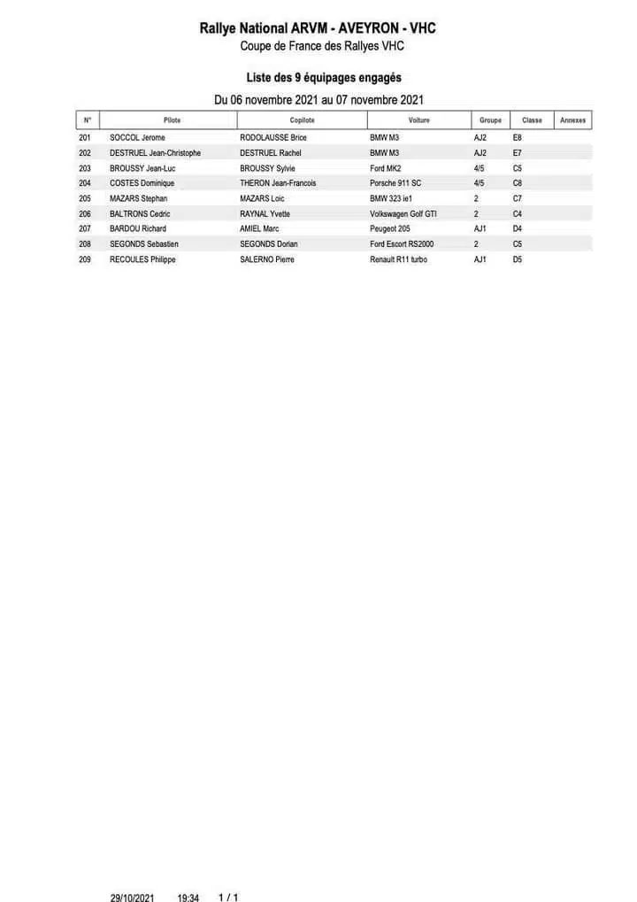 5 spéciales pour une centaine de secteurs chronométrés au programme de cette première édition du Rallye ARVM – Aveyron qui se déroulera autour de la ville de Rignac les 6 et 7 Novembre 2021.