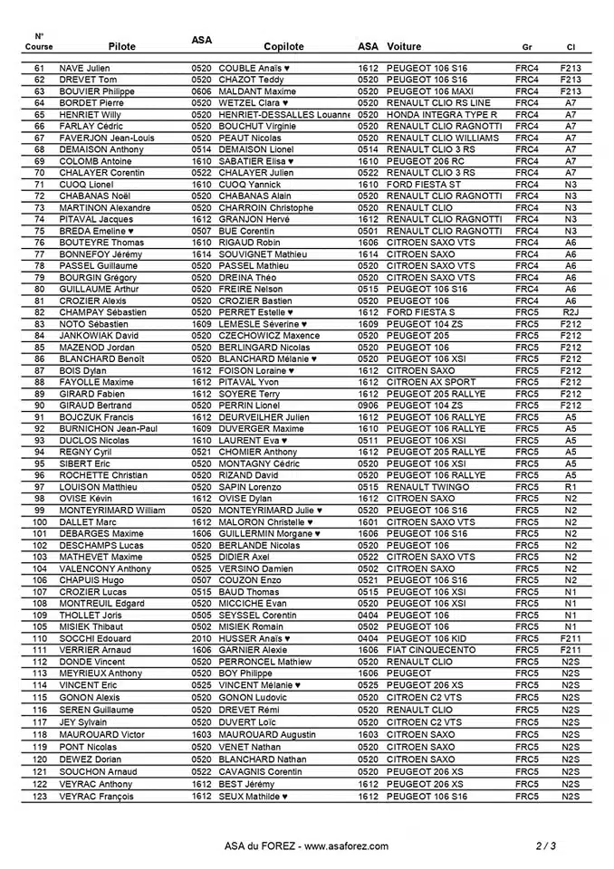 Rallye Baldomérien 2025 – Liste des engagés