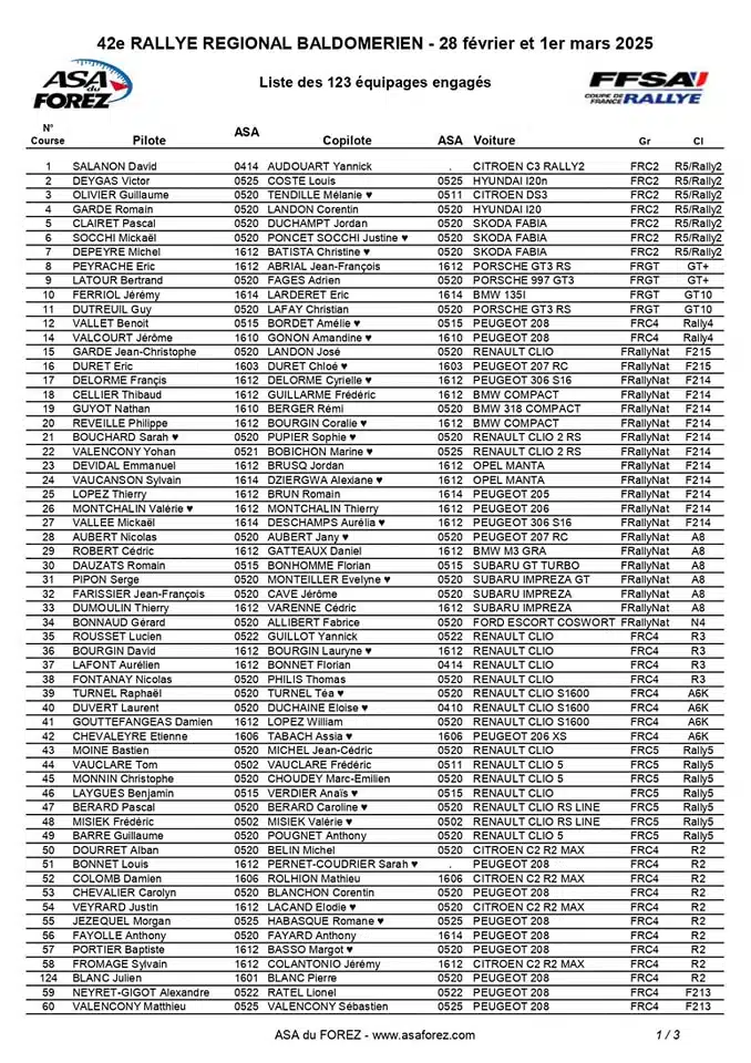 Rallye Baldomérien 2025 – Liste des engagés