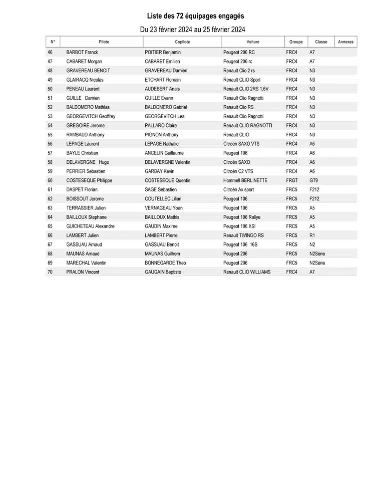 | ES5 | 17h55 | Coubeyrac 2 | 9,09 km |