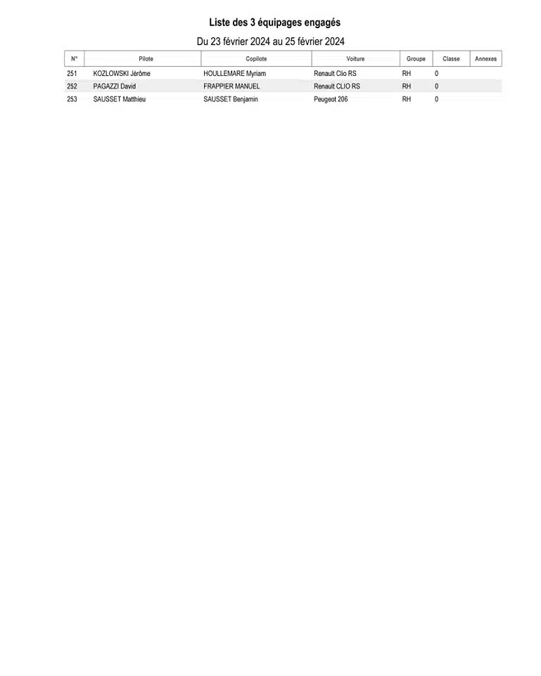 | Samedi 24 Février 2024 | |||