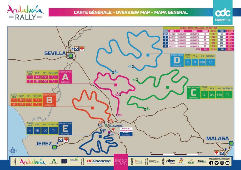 Les 7,8,9 et 10 octobre auront lieu les 4 étapes de l’Andalucia Rally avec une distance de plus ou moins 1 000 kilomètres de spéciales à parcourir au total. Les étapes 1,2 et 4 seront composées de deux boucles alors que l’étape 3 sera d’une seule spéciale de 300 kilomètres !