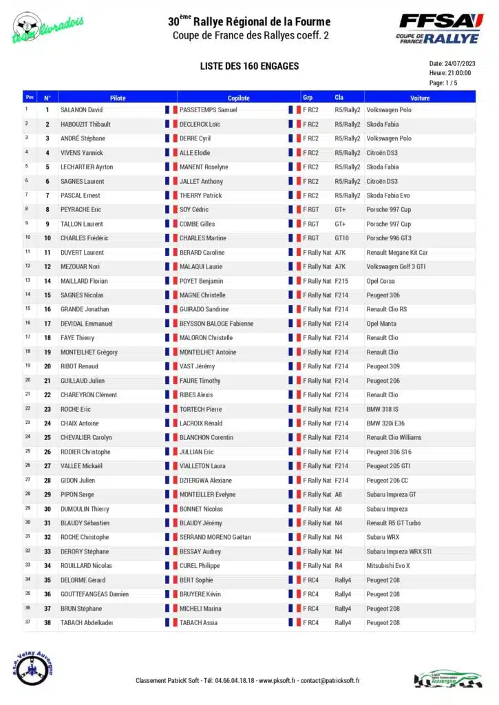 Liste des engagés :