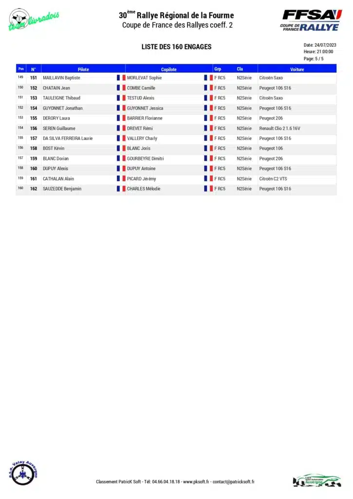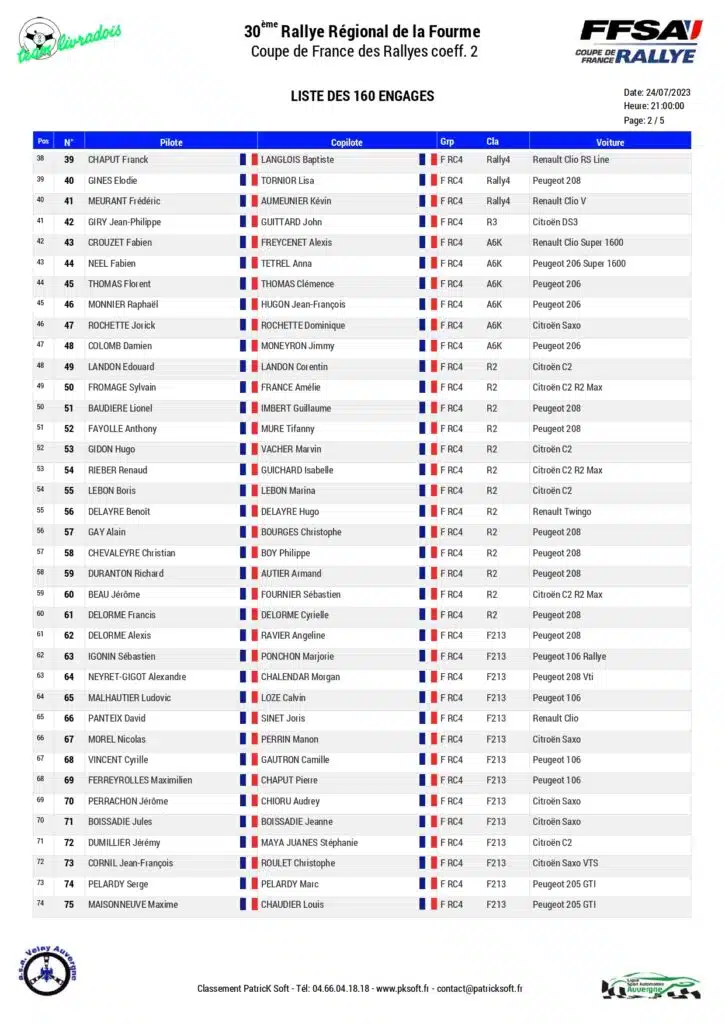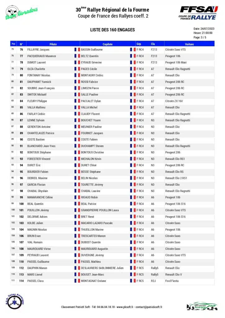 La 30 ème édition du Rallye régional de la Fourme d’Ambert sera organisé les 28 et 29 juillet 2023 par l’ASA Velay avec au programme six spéciales.