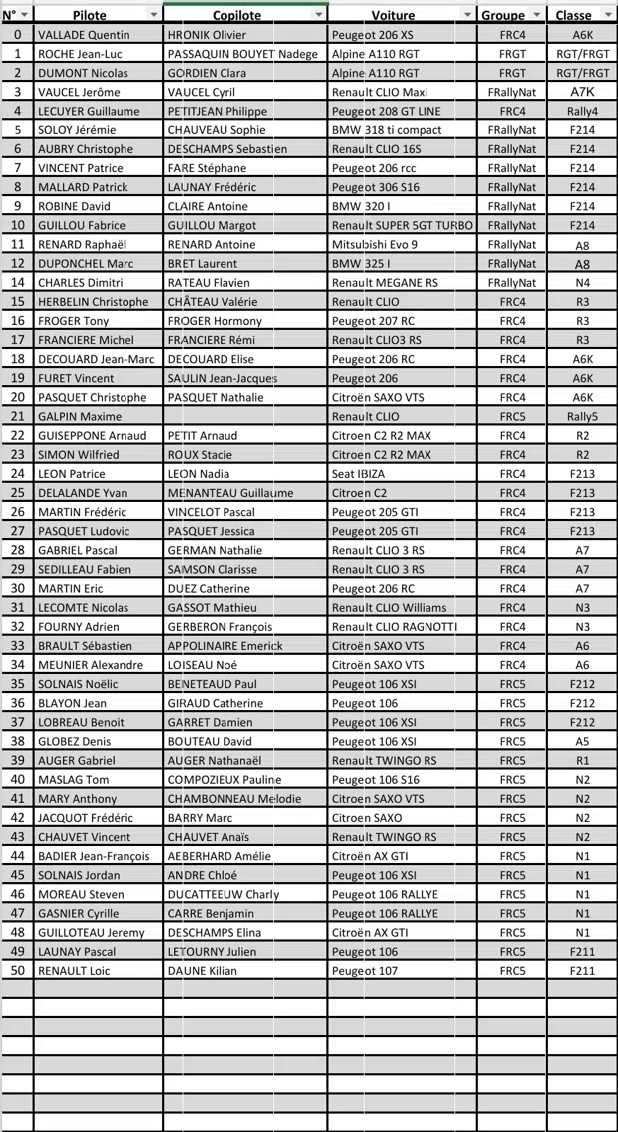 Départ de la 1ère voiture à 9h00