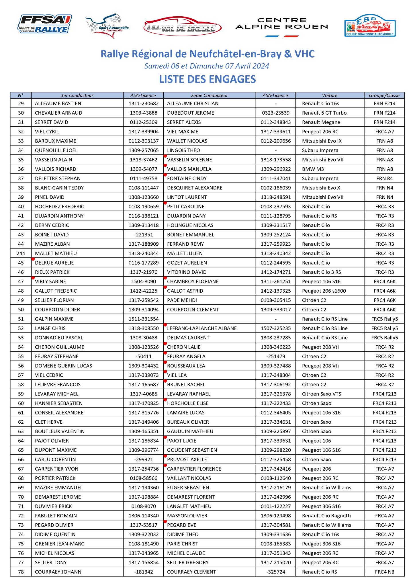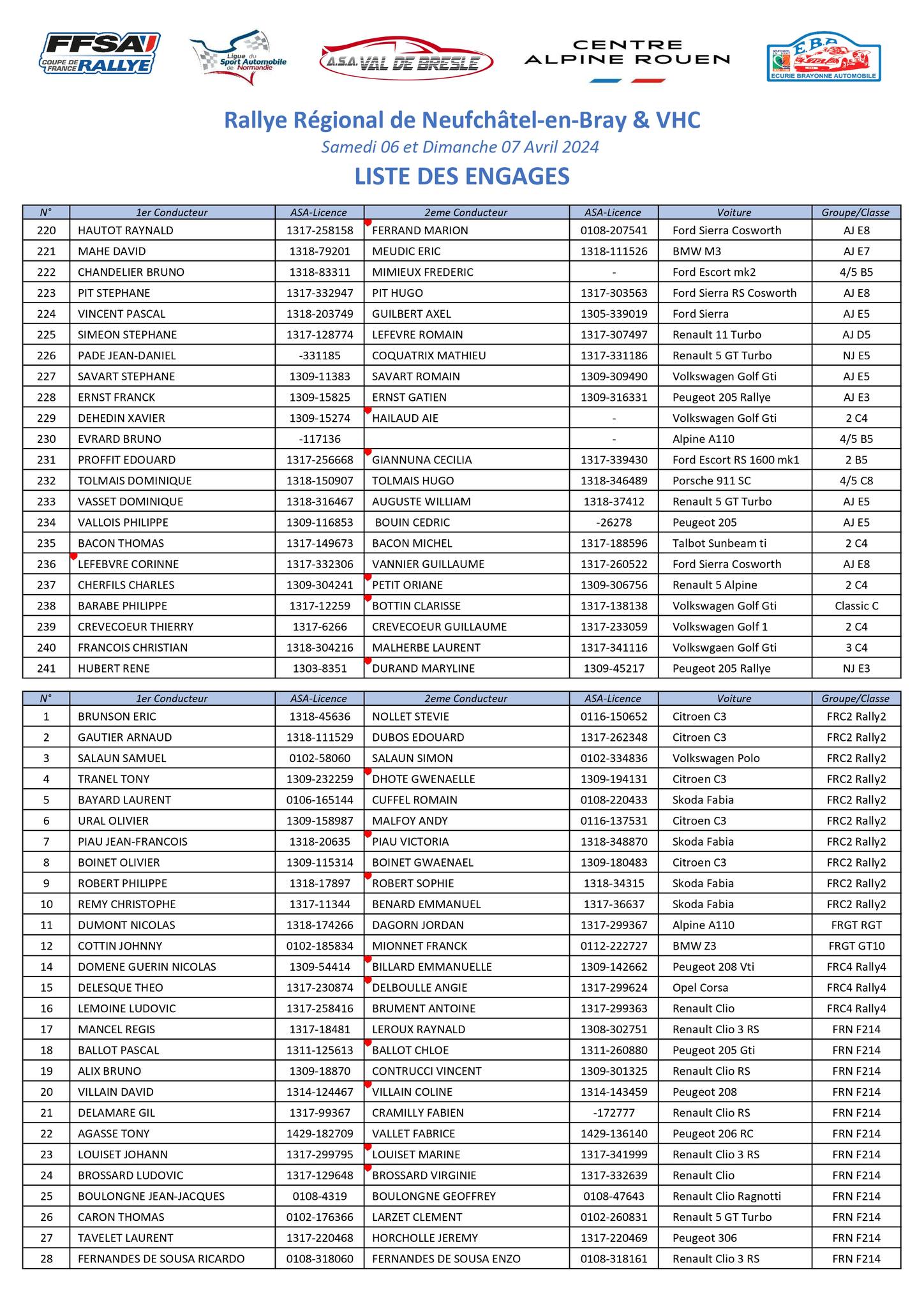 La 39 ème édition du Rallye régional de Neufchâtel-en-Bray sera organisée les 6 et 7 avril 2024 par l’ASA Val de Bresle avec au programme six spéciales.