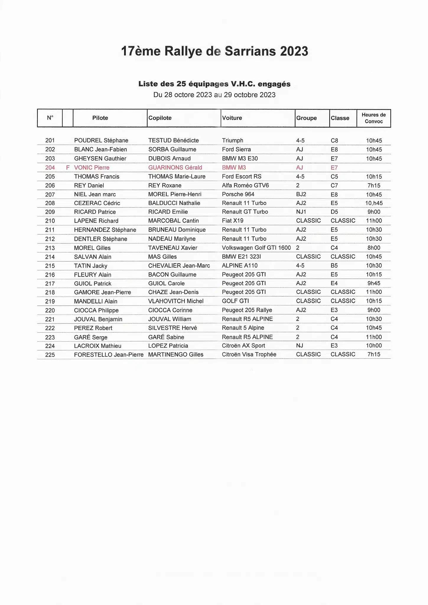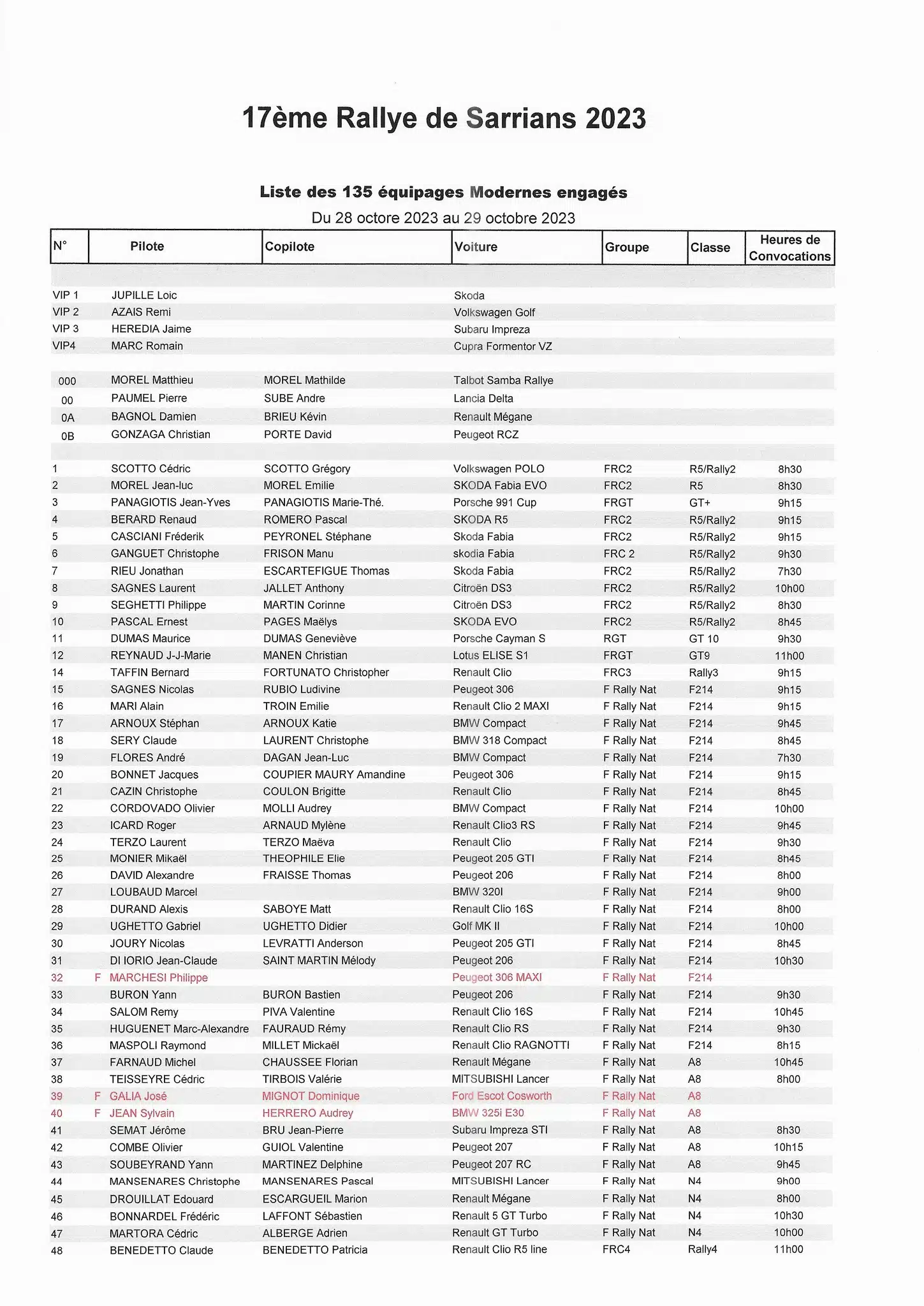 | Samedi 28 Octobre 2023 | |||