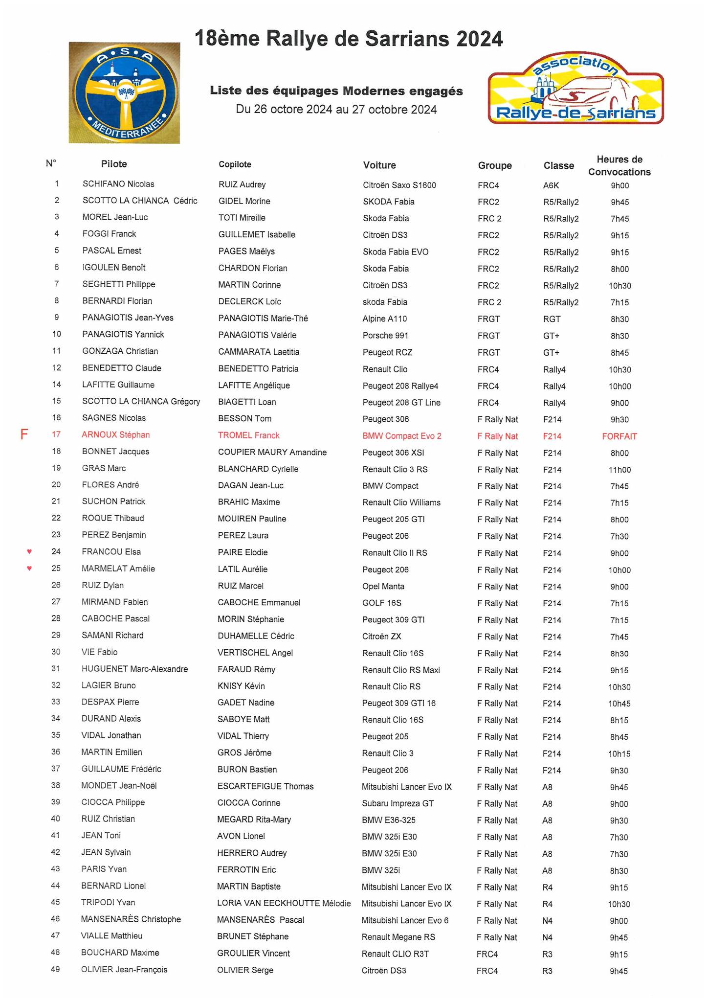 Le Rallye de Sarrians 2024 se déroulera les 26 et 27 Octobre 2024 avec huit spéciales au programme et la liste des engagés vient d’être publiée avec plus de 140 engagés sur cette édition.