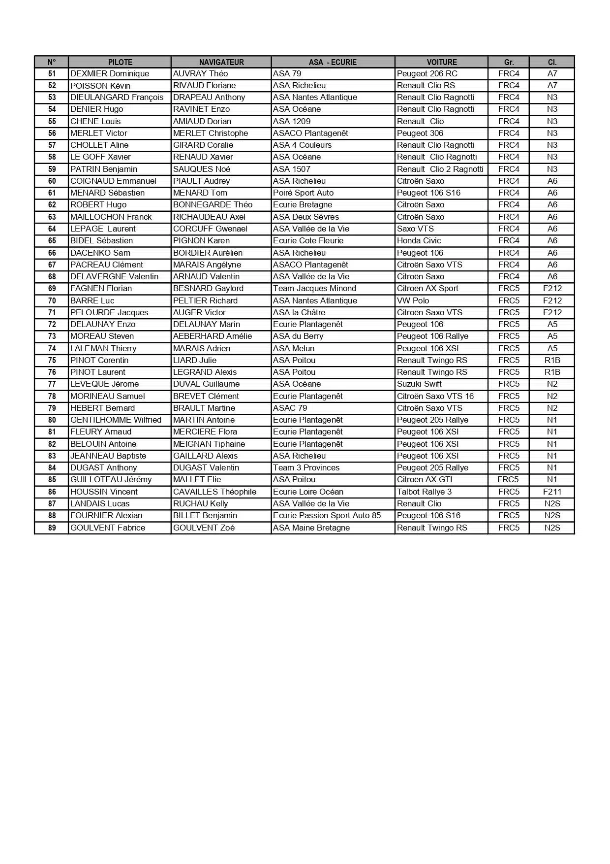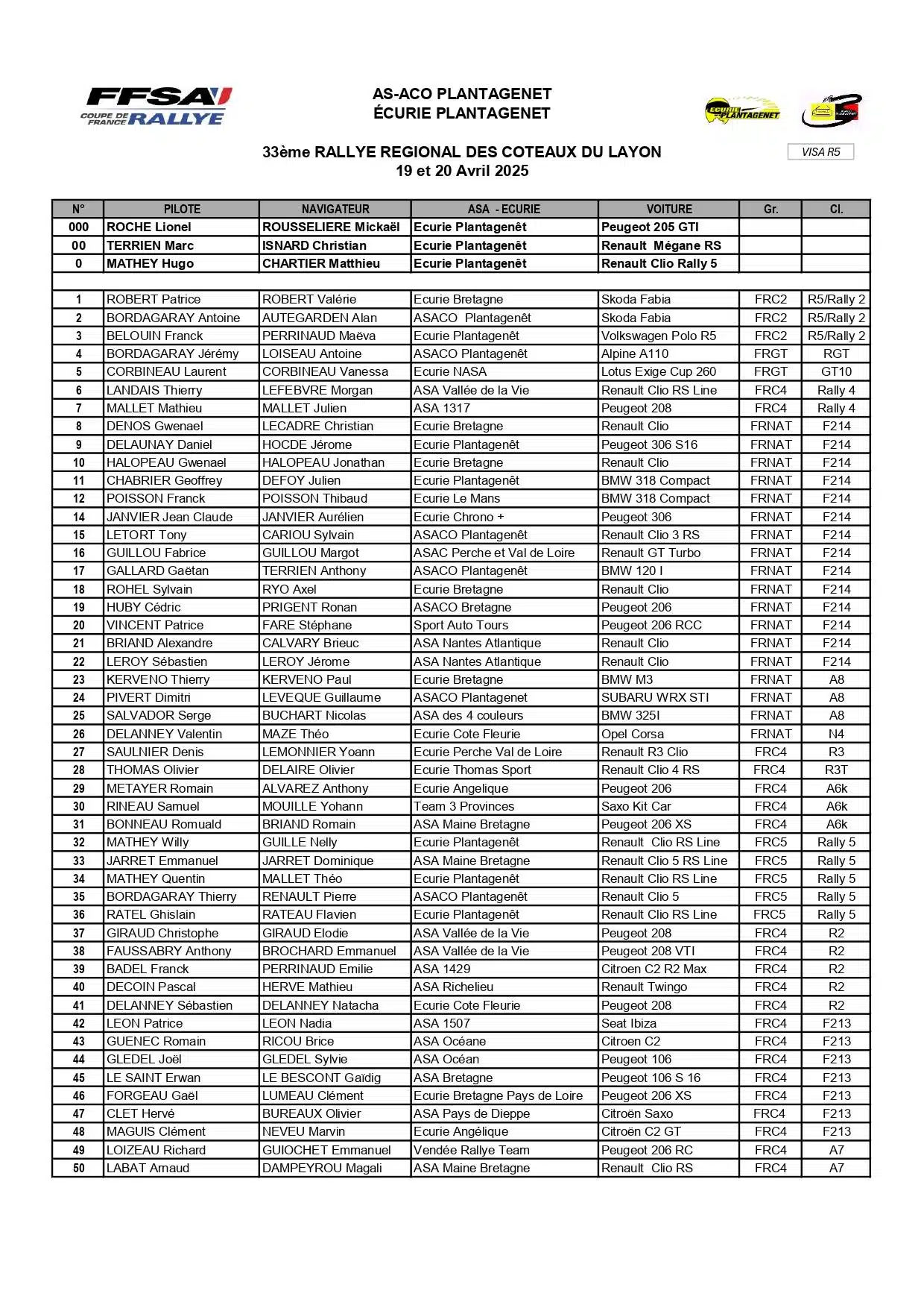 Rallye des Coteaux du Layon 2025 – Liste des engagés