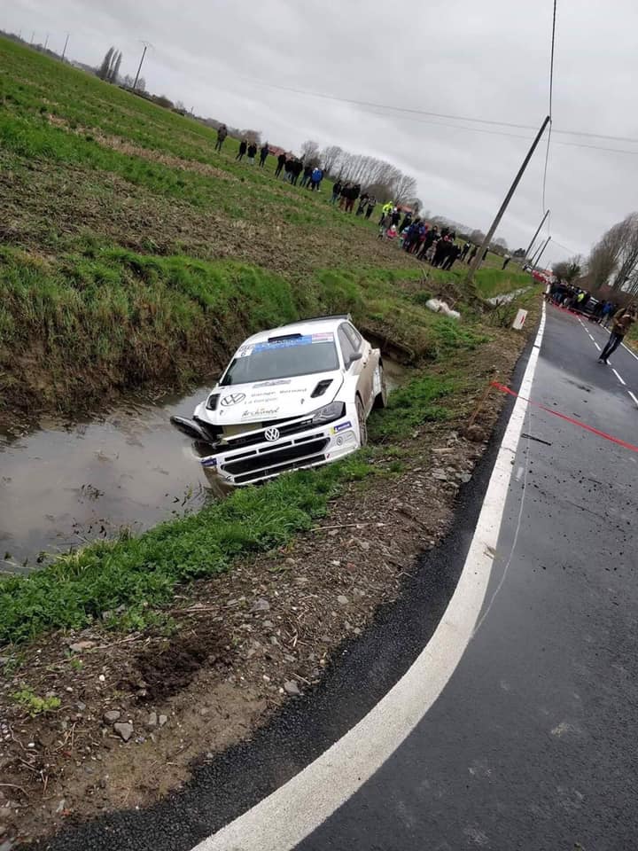 Rien de bien méchant pour la Polo R5, un freinage trop tardif et la belle fini sa course dans un trou plein d’eau avec impossibilité de la sortir.
