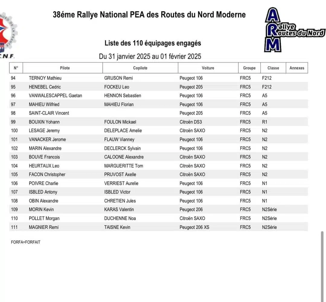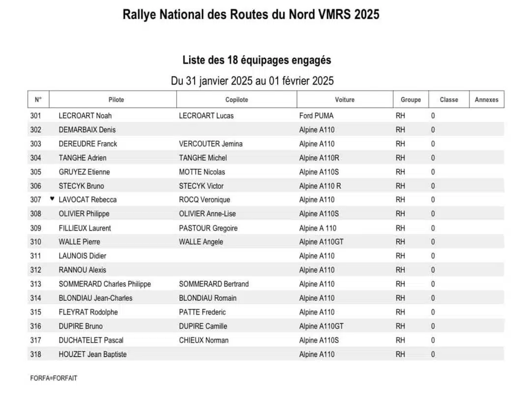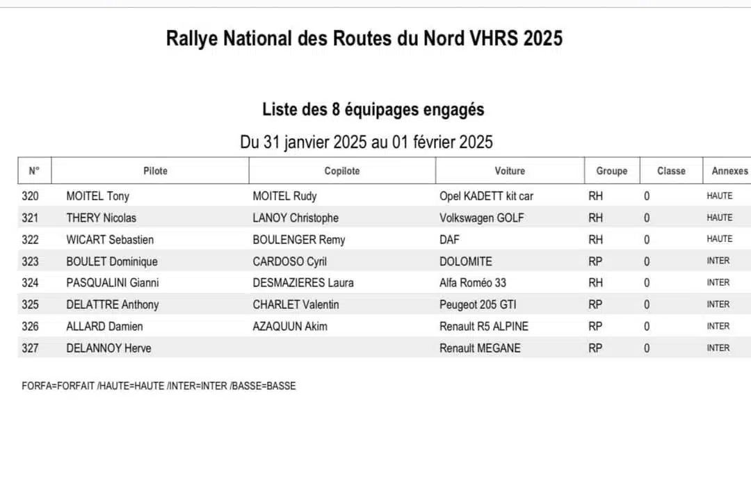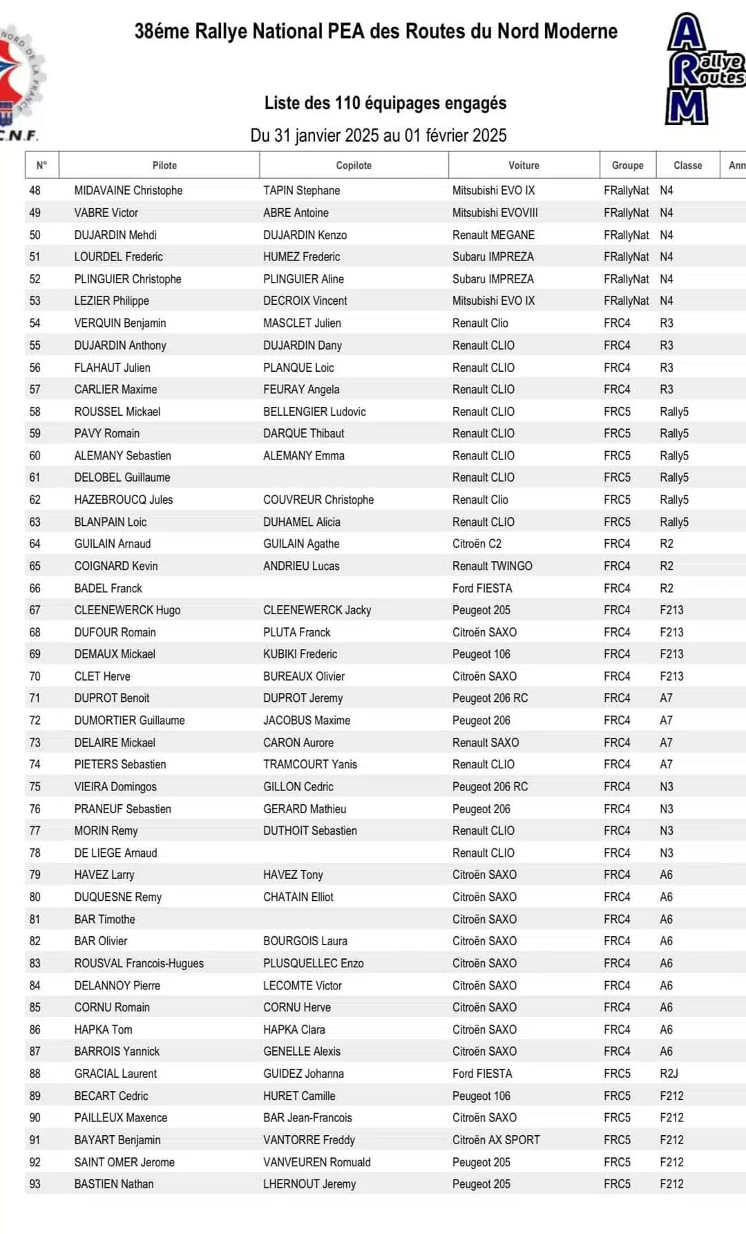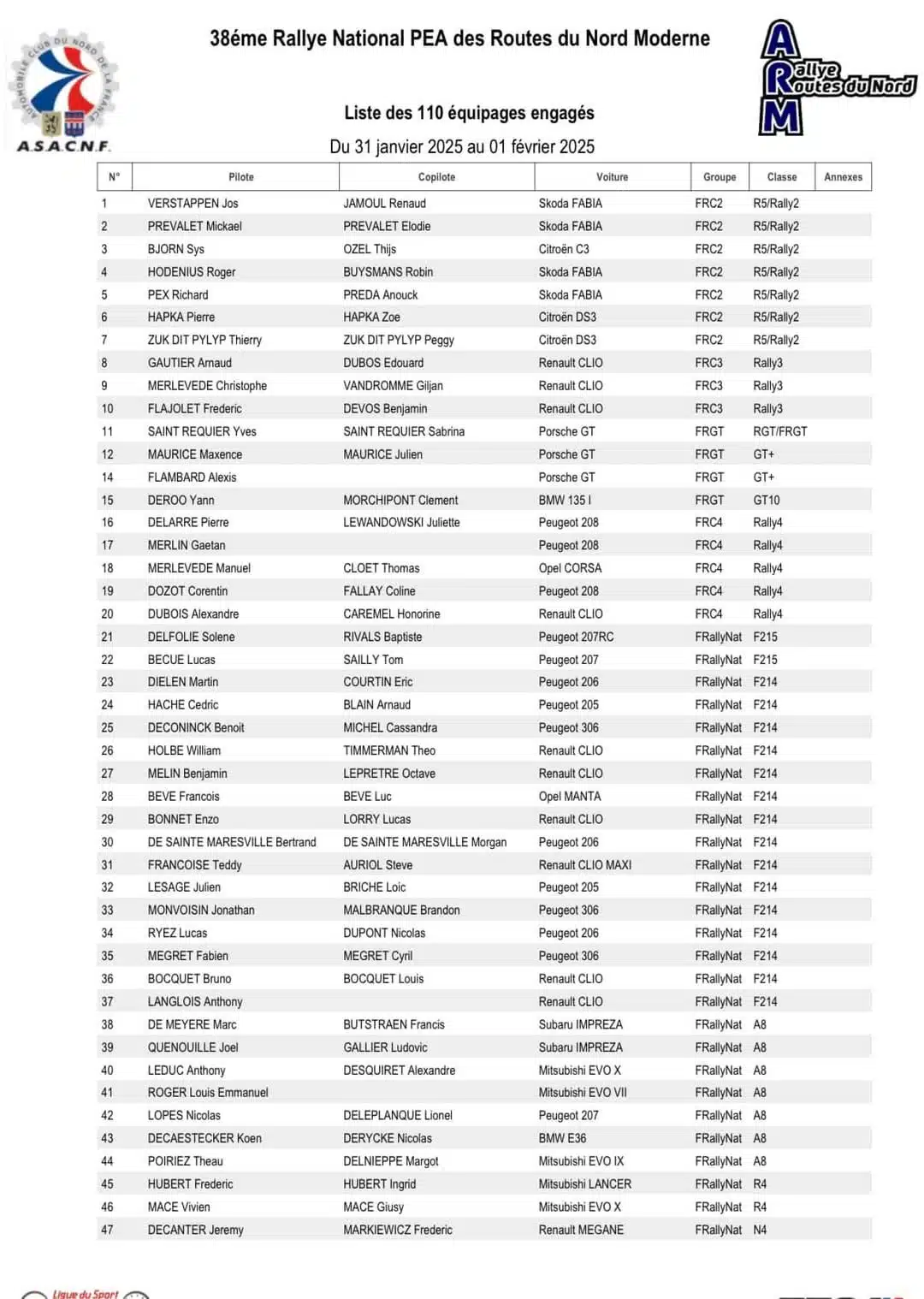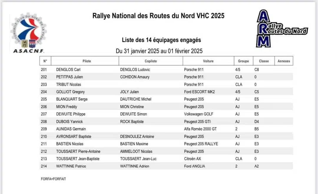 Le Rallye des routes du Nord 2025 sera organisé par l’Association rallye mervilloise les 30 Janvier 2025 et 1er Février 2025 et c’est une très belle liste d’engagés qui se présente avec 110 équipages en moderne.