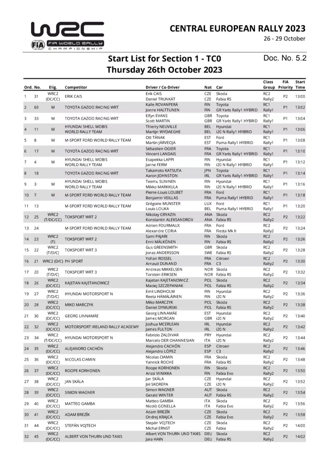 Première journée très courte avec seulement deux spéciales. Cela débutera dès 14 h 05 et enfin la seconde et dernière spéciale sera programmée à 18 h 05 et voici la liste de départ officielle.
