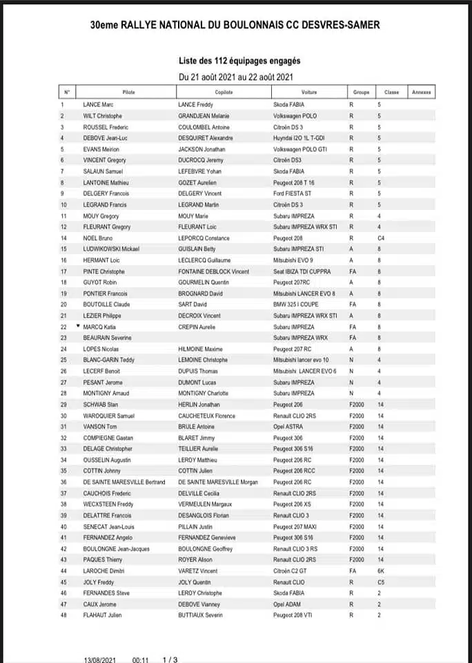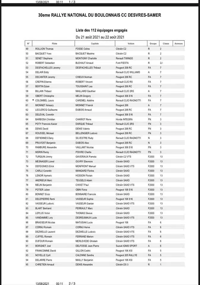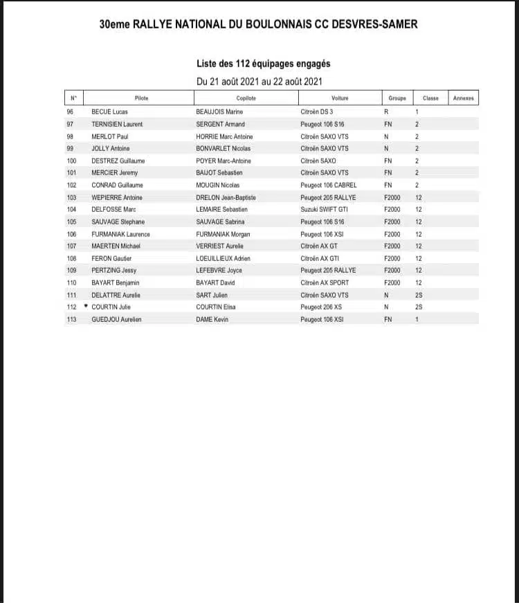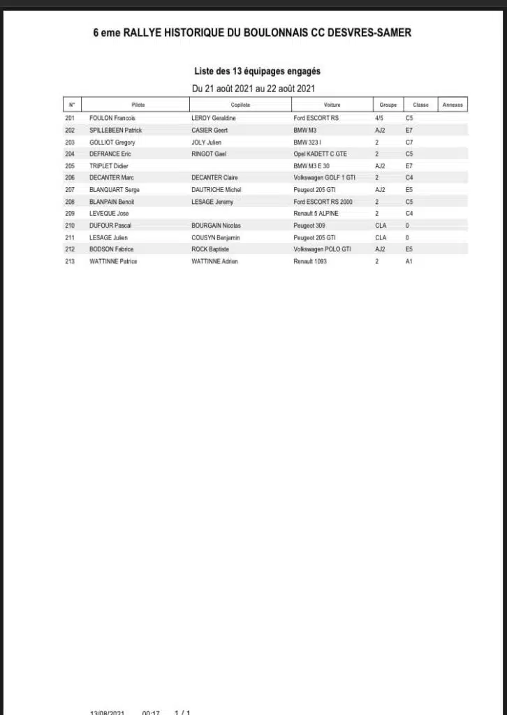 Le 30 ème Rallye national du Boulonnais est organisé du 20 au 22 août 2021 par l’ASA du Détroit et l’Auto Club Côte d’Opale, ligue des Hauts de France avec dix spéciales au programme.