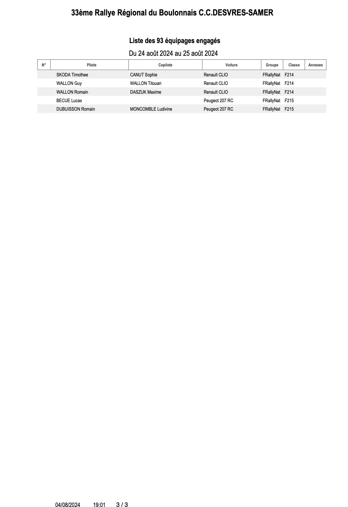 93 équipages se sont engagés sur l’édition du Rallye du Boulonnais 2024. Christophe Wilt sera opposé à Jean Luc Debove, Marc Lance et Melissa Debackere en Rally2 et ils devraient naturellement se battre pour la victoire.
