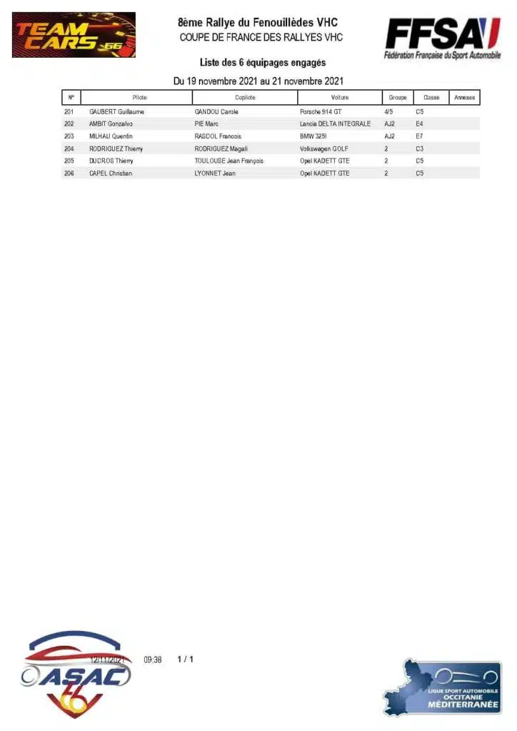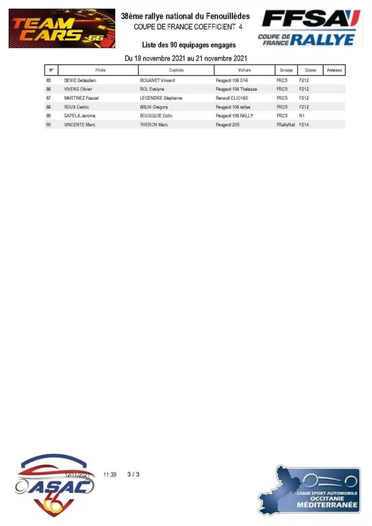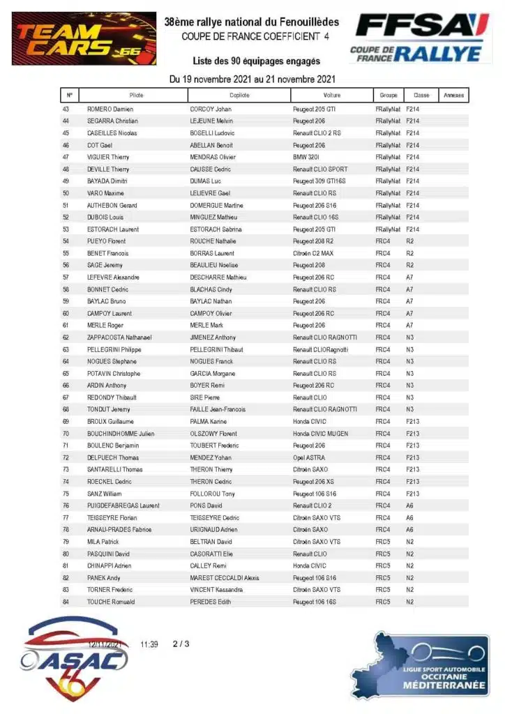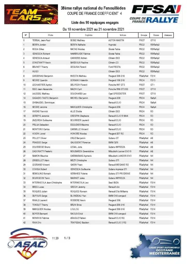 La 38 ème édition du Rallye du Fenouillèdes se déroulera les 19, 20 et 21 Novembre 2021 avec 10 spéciales au programme et Jordan Berfa viendra défendre son titre 2019 ! Voici le programme, les spéciales et les engagés !