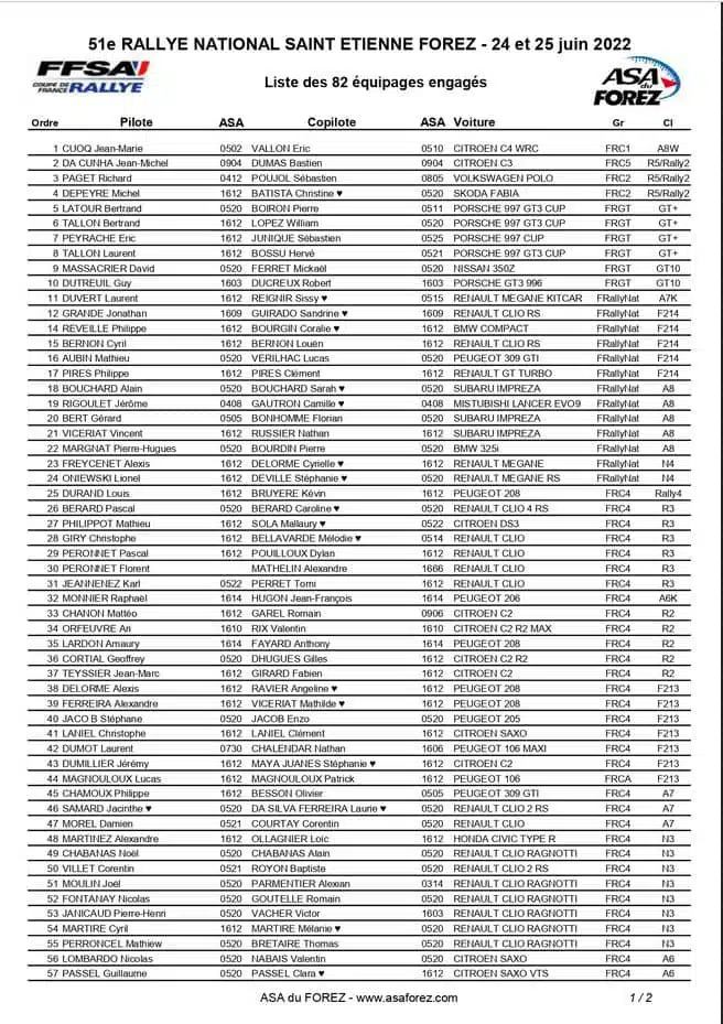 La 51 ème édition du Rallye national Saint-Etienne – Forez & VHC VHRS sera organisée les 24 et 25 juin 2022 par l’ASA du Forez.