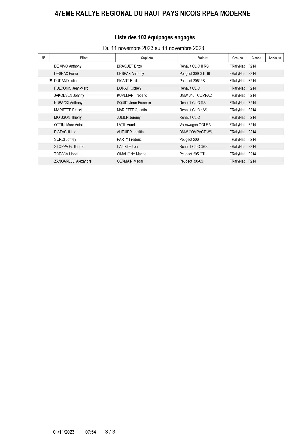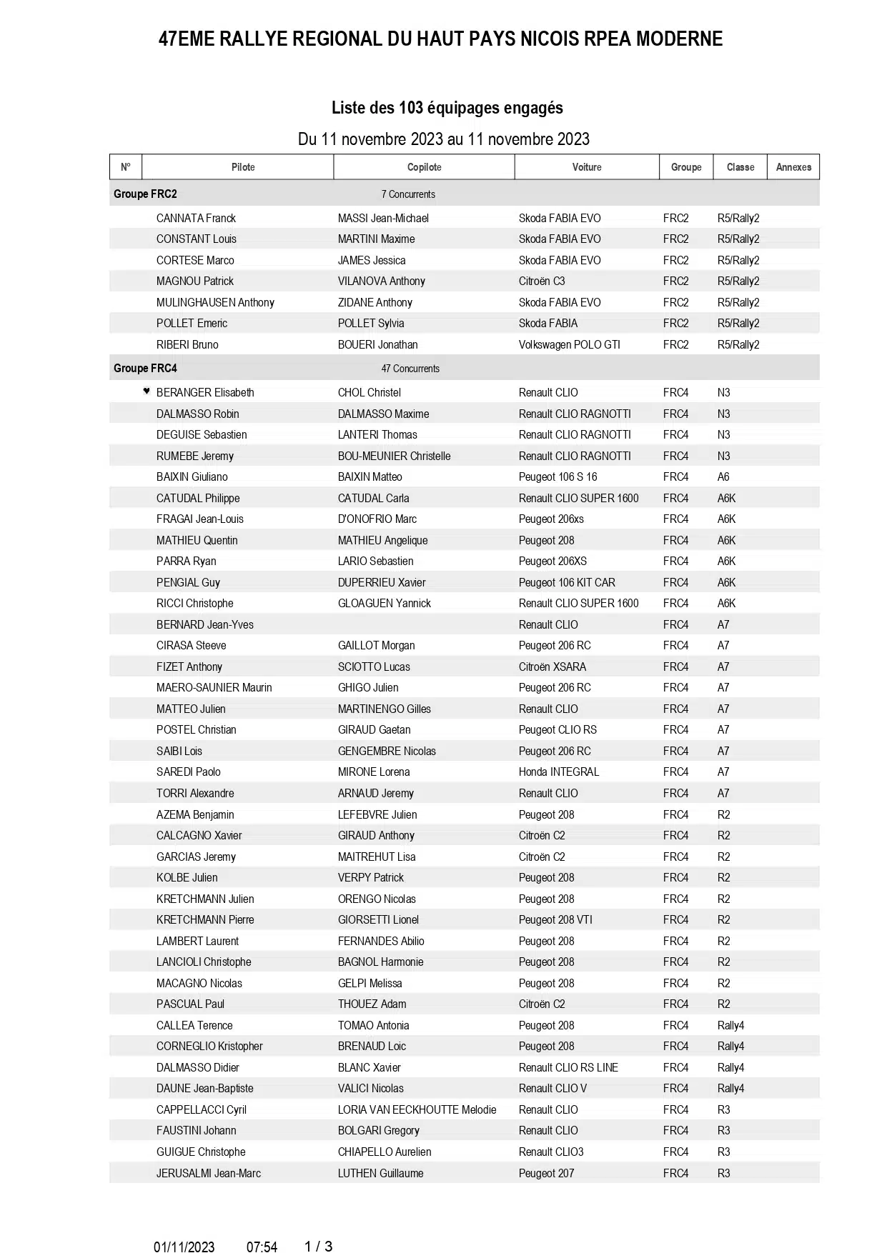 Le Rallye régional du Haut Pays Niçois sera organisé les 10 et 11 novembre 2023 par l’ASAC de Nice avec au programme cinq spéciales.