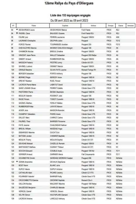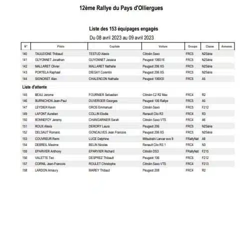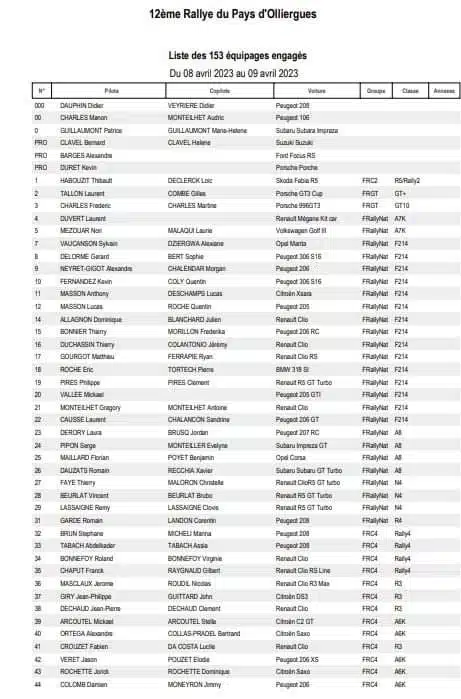 La 12 ème édition du Rallye régional Pays d’Olliergues sera organisée les 8 et 9 avril 2023 par l’ASA Livradois Forez soit 40,05kms d’es pour un parcours totale de 94.650 kms.