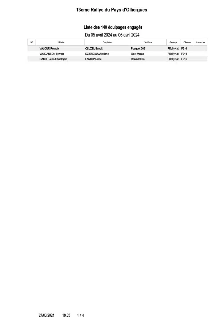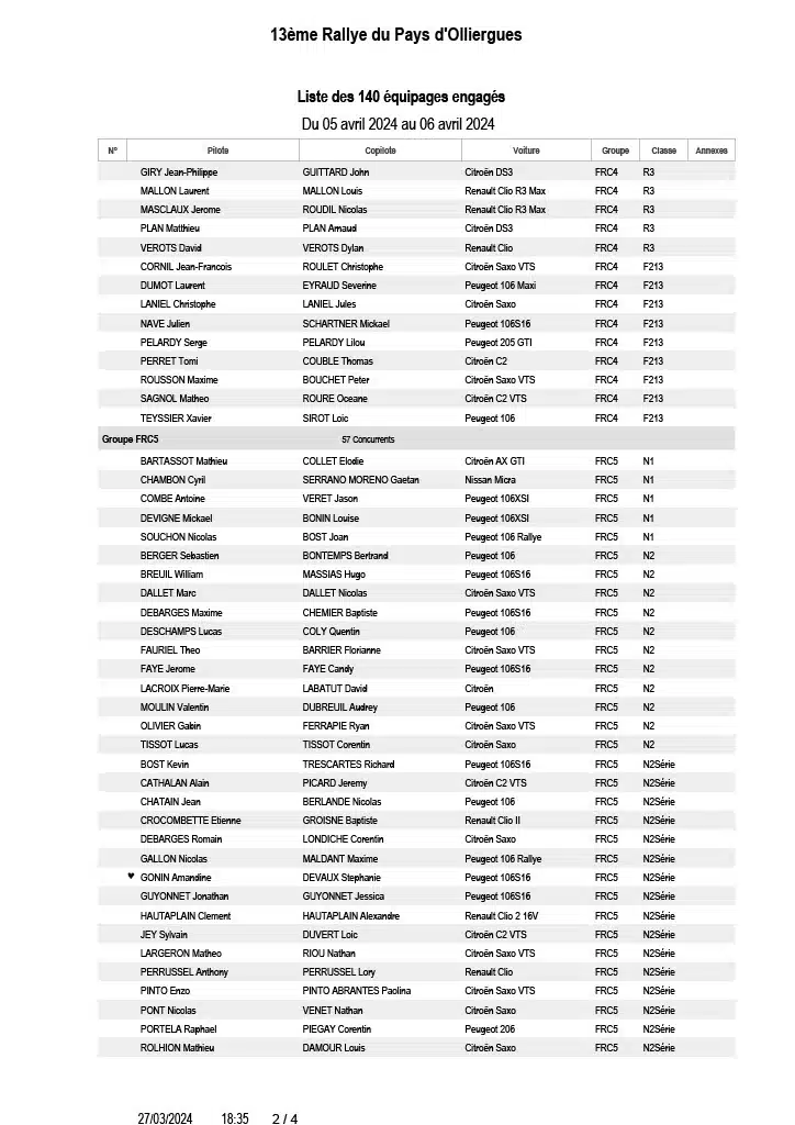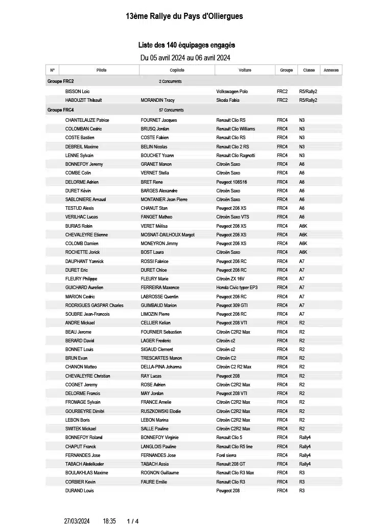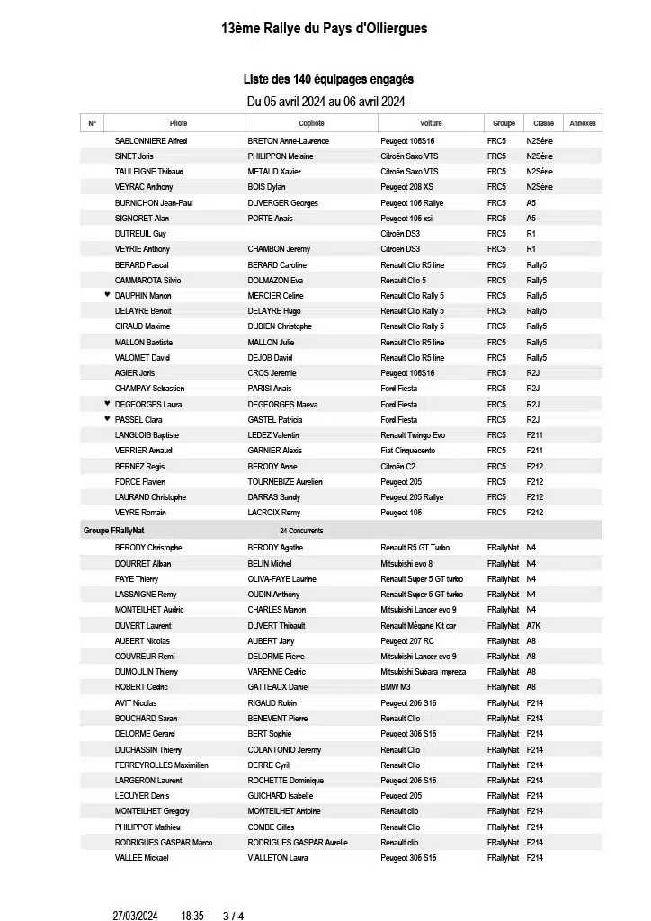 Pour sa 13 ème édition le Rallye régional Pays d’Olliergues sera organisé les 5 et 6 avril 2024 par l’ASA Livradois Forez avec au programme six spéciales.